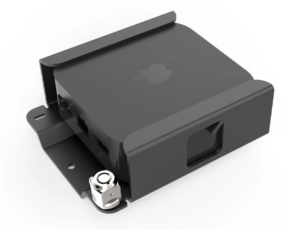 A Maclocks Apple TV Security Mount egy 75 x 75 VESA rögzítő sablon szerint alkotott tartó megoldás, amelyet akár televízió hátoldalán, akár a csavarnyílások révén falon, íróasztal alján is elhelyezhetünk. Az egység masszív alumínium kialakítású - a fém szerkezet könnyű, ugyanakkor rendkívül erős is. Ennek köszönhetően nem csak stabil, de egy megfelelő számítástechnikai lakattal kiegészítve a standard lakatnyílása révén biztonságos tárolóként is szolgál. A konstrukció ideális akkor, ha például gipszkarton fal mögül ízlésesen elrejtve állnak ki a szakemberek a kábelekkel: a Maclocks Apple TV zárható falitartó szabadon hagyja a kábelek számára az utat, ugyanakkor a lakat alkalmazásával ellehetetleníti az Apple TV kihúzását és így eltulajdonítását.