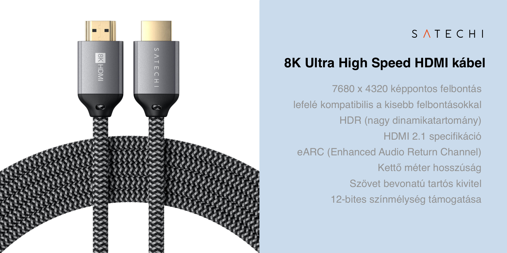 A Satechi cég korát picivel megelőzve, de jó érzékkel időben reagálva mutatta be első 8K felbontású HDMI kábelét, amely révén ebben a jövőben elterjedő formátumban is tudunk médiát továbbítani. A két méter hosszú kábel a cégtől megszokott módon szövet bevonatú és alumínium fejekkel van ellátva.