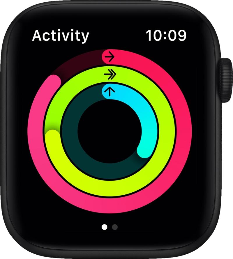 Az Apple Watch SE folyamatosan figyeli a mozgásunkat: aktivitásmérő megoldásai figyelik, hogy egy adott órában mozogtunk-e, felálltunk-e pár lépést megtenni, és motiválnak, hogy teljesítsük az ezzel kapcsolatos célkitűzéseinket. Az Fitness / Fitnesz alkalmazás felületén kék kör mutatja, hogy az alapértelmezés szerint 12 órás célból mennyiben mozogtunk legalább egy picit, piros kör szimbolizálja a napi aktívan elégetni kívánt kalóriánknak megfelelő mozgásunk arányát, valamint zöld kör mutatja a sportolással, aktív testmozgással töltött időt. Ezek a mozgás gyűrűk azok, amelyek bezárására az óra biztat. Hogy éppen aktívan mozgunk-e, azt az Apple Watch szenzorai állapítják meg: egyrészt haladásunk sebessége, csuklónk különböző mozdulatai segítenek ebben, hiszen a gyors gyaloglásnál, futásnál, úszásnál jellegzetes mozdulatokat teszünk, így az óra néhány perc után magától rá is kérdez, hogy edzést végzünk-e, még akkor is, ha manuálisan nem indítottuk el a tevékenységünket. Másrészt a szívünk működéséből, annak erőteljesebb pulzusszámából is következtetni tud arra, hogy éppen erősebb igénybevételnek van kitéve a szervezetünk.