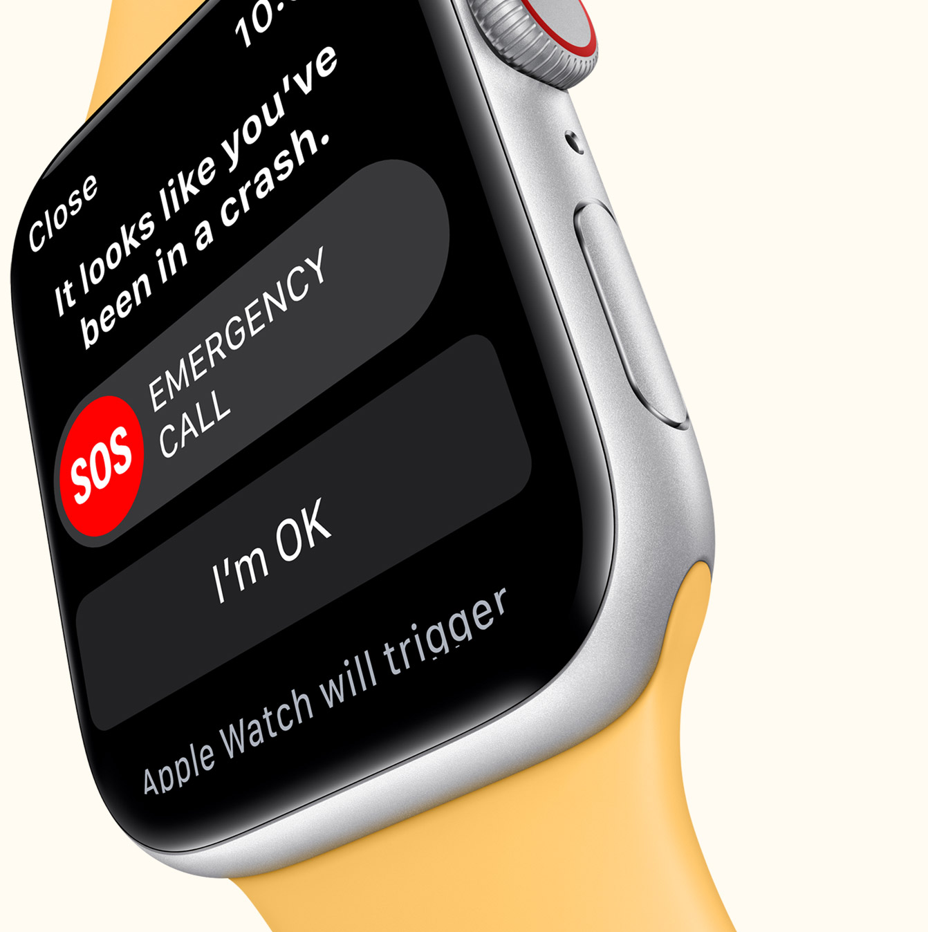 Szintén életmentő az esés érzékelés, amely akár automatikusan képes segélyt hívni, ha az óra viselője nem reagál: Az Apple Watch SE érzékeli, ha hirtelen esés történik, és ilyenkor a kézen jelzéseket, rezgést ad le, hogy ezzel vizsgálja, hogy a viselő eszméleténél van-e. Amennyiben nem kap választ, segítséget hív. A veszélyhelyzetben egyébként az oldalsó gomb hosszú nyomva tartásával is mód van segélyhívás indítására.