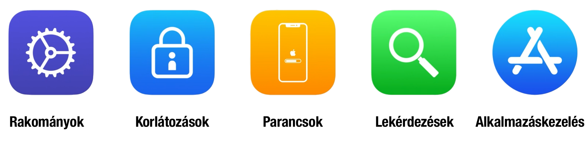 Az Apple platformjain elérhető mobileszköz kezelés (mobile device management, MDM) úgynevezett rakományokat (payload) biztosít, amelyek segítségével bizonyos beállításokat rögzíthetünk, hogy a cégben lévő összes eszközön rendelkezésre álljanak. E rakományokat egy konfigurációs profil segítségével tudja elérni a vállalati eszköz, amely hagyományosan egy webhelyről érhető el.