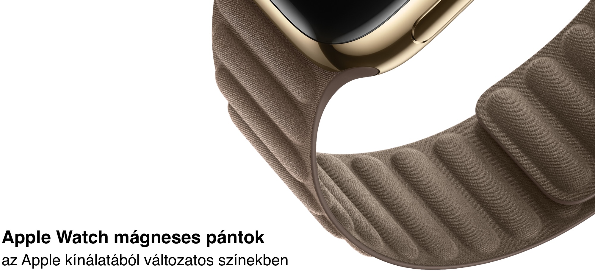 Az elegáns mágneses pánt FineWoven szövetből készül. Összezárva mágnesei finoman elhajolva követik a csukló ívét, így használat közben biztosan és kényelmesen tart.
