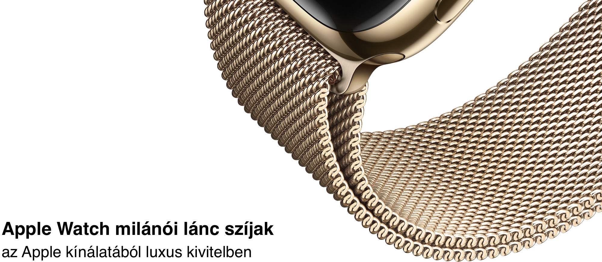 Az olasz ékszeripar inspirálta az Apple Watch készülékhez alkotott egyik legszebb karpántot, a rozsdamentes acél alapanyagú milánói láncszíjat, amely roppant finom szövésű, páratlanul elegáns és mágneses kivitele révén rugalmasan szűkíthető.
