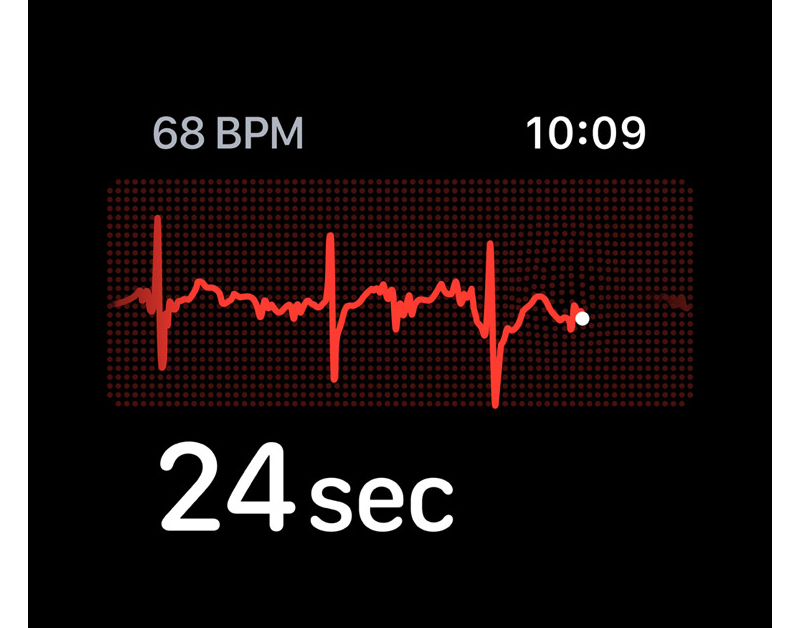 Az Apple Watch egyik leglátványosabb képessége, amely az illetékes egészségügyi hivatalok ellenőrzésével és jóváhagyásával valósult meg, a Digital Crown / Digitális korona azon képessége, hogy ujjunk ráhelyezésével az óra képes EKG-t készíteni. Az Apple Watch által létrehozott EKG az egyelvezetéses elektrokardiogramhoz hasonló megoldás, az eredményt pedig azonnal láthatjuk az iPhone Health / Egészség alkalmazásában, és akár PDF-ben tovább is tudjuk küldeni kezelőorvosunk számára.