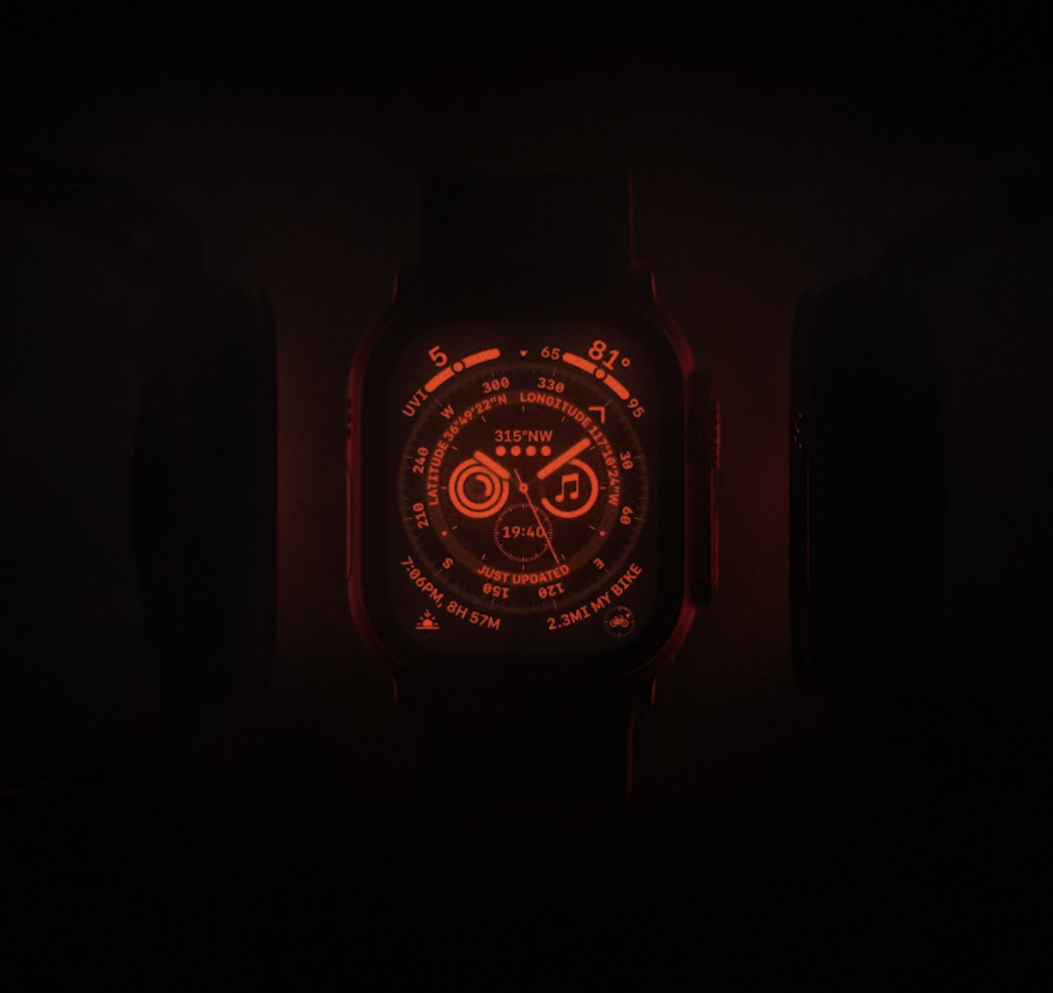 Az Útjelző számlapon akár nyolc különféle funkció elfér, mint a tevékenységgyűrűk állapota, a napkelte és napnyugta, az iránytű, a hőmérséklet, a zenelejátszás, az időjárás és persze az idő. E számlap használata esetén a digitális koronát finoman elfordítva annak megjelenése fekete alapon pirosra változik, hogy éjjel ne világítson tolakodóan az óra, ugyanakkor a tartalmakat jól láthassuk. E tartalom víz alatt is jól érzékelhető, de egy éjjeli csónaktúra alkalmával sem zavar meg senkit a karóránk fénye ebben a módban.