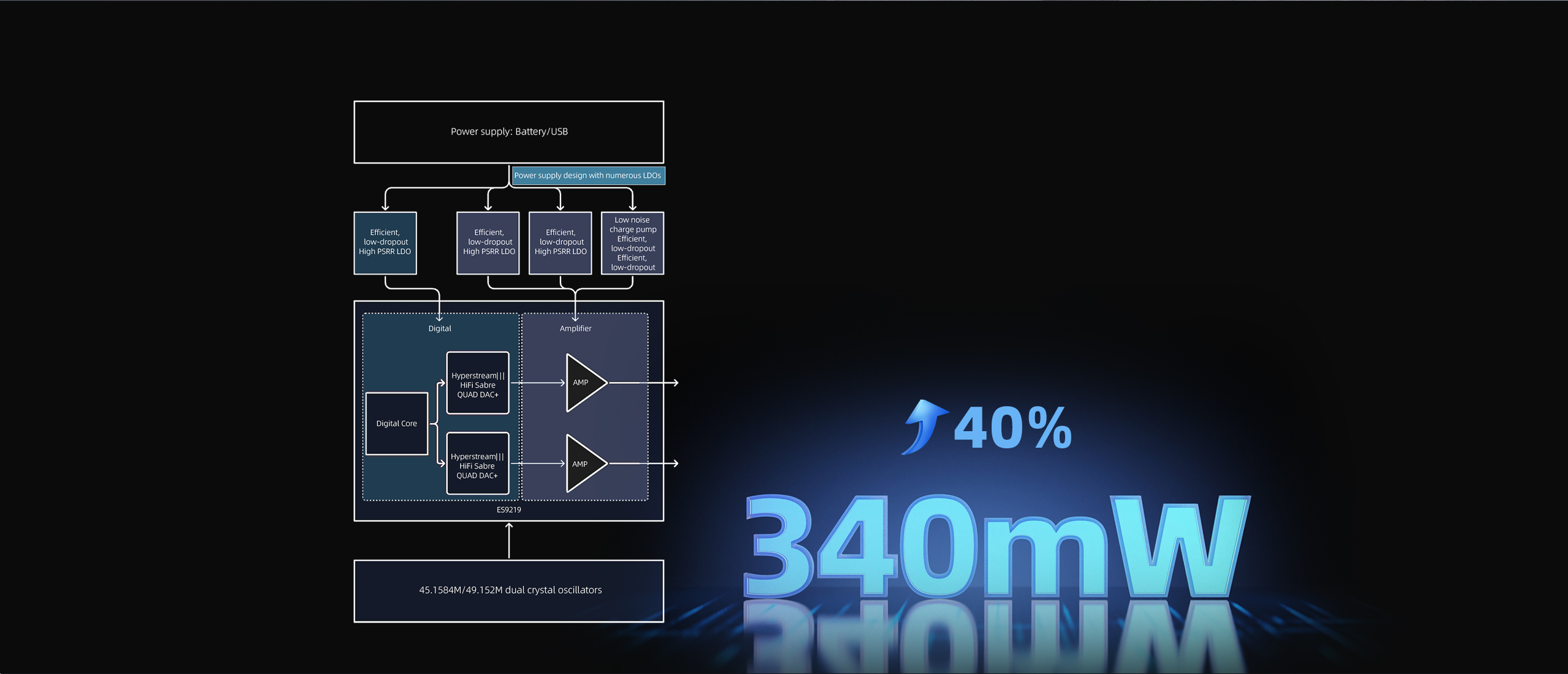 Chipkészlet: DAC: ES9219MQ * 2 ,USB: XMOS XU316, Bluetooth: QCC5125