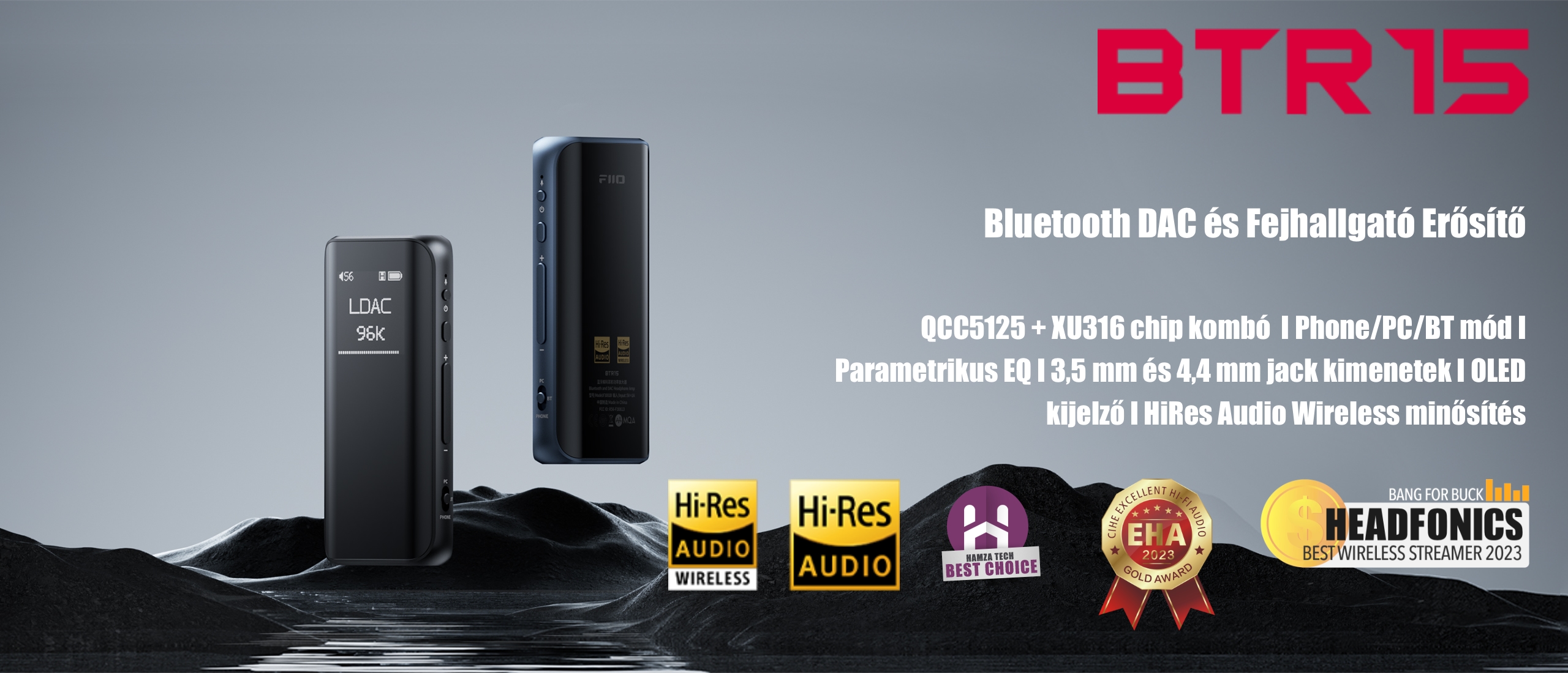 A BTR15 a FiiO cég megújított felső kategóriás bluetooth fejhallgató erősítője, amely vezetékes DAC-ként (hangkártyaként) is használható és MQA zenei fájlok dekódolására is képes.