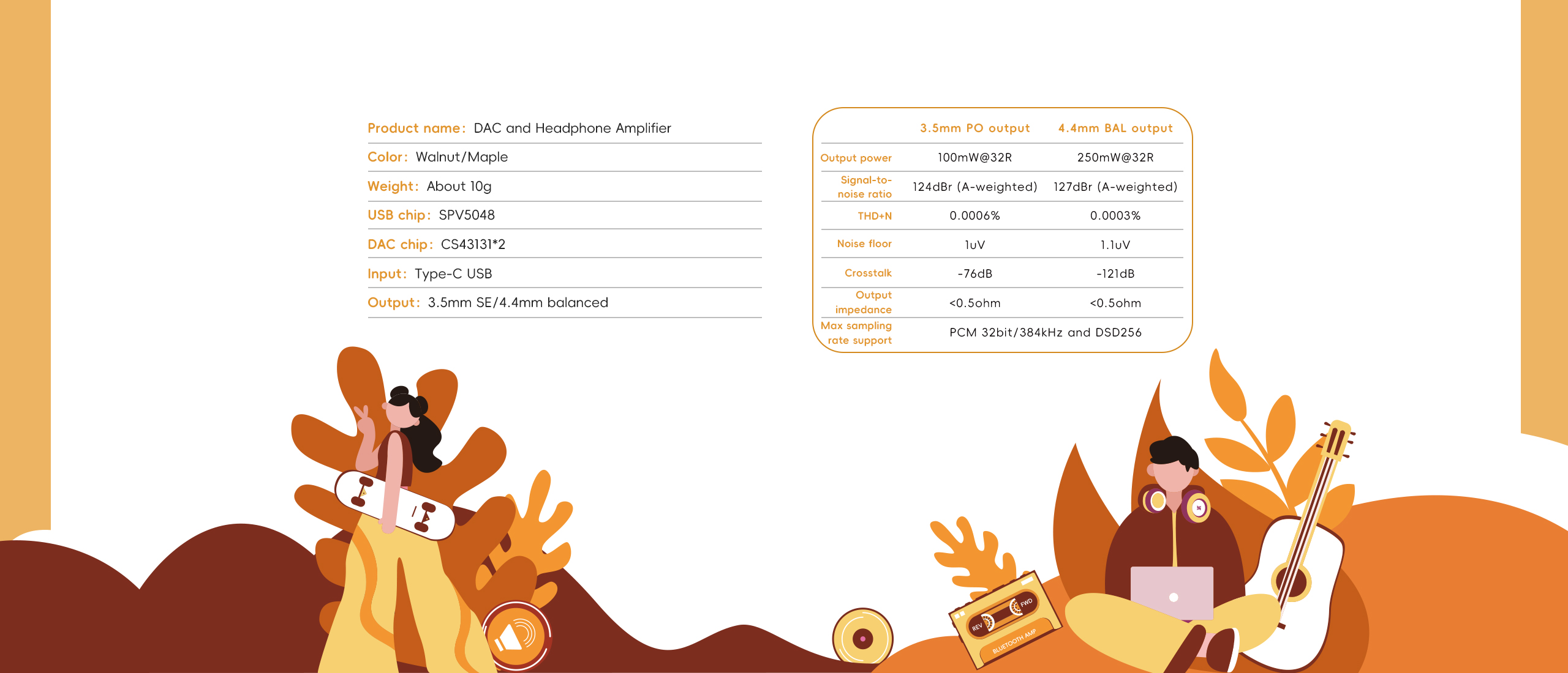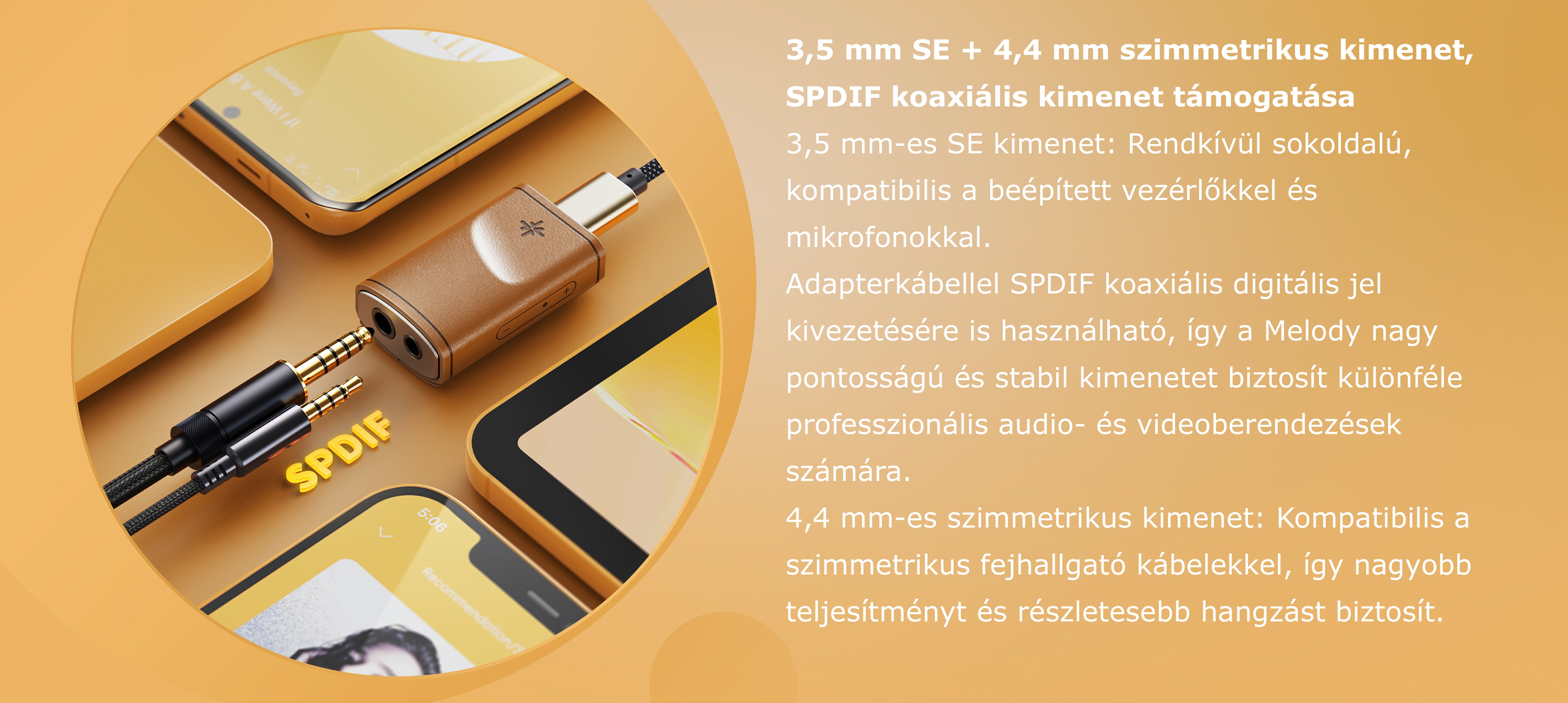 Csatlakozók: 3.5 mm jack (fejhallgató kimenet+SPDIF), 4.4 szimmetrikus, USB-C