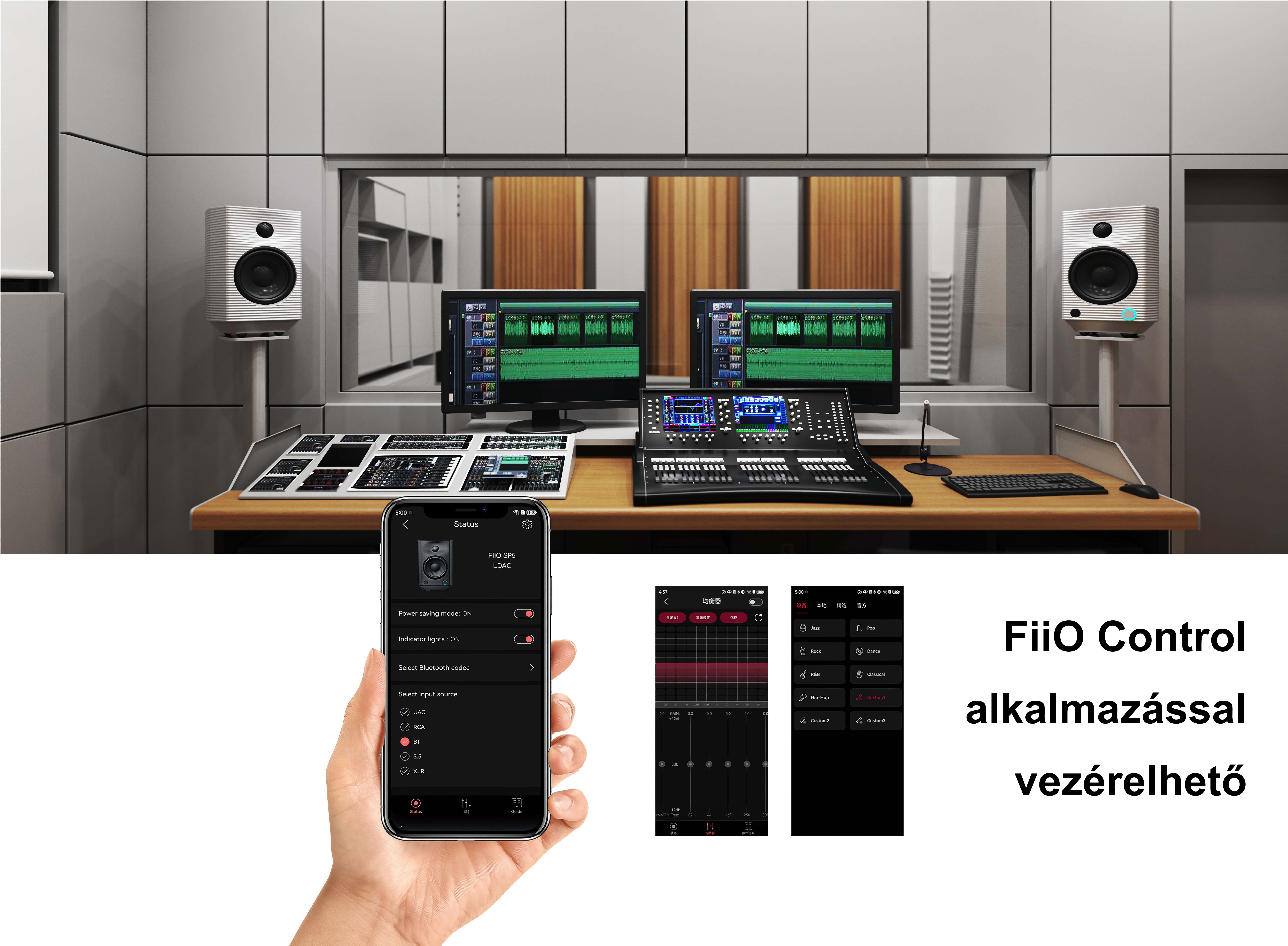 Egy okostelefonra telepített FiiO Control App segítsévével Bluetooth kapcsolaton keresztül finomhangolható az SP5. Beállítható többek között: