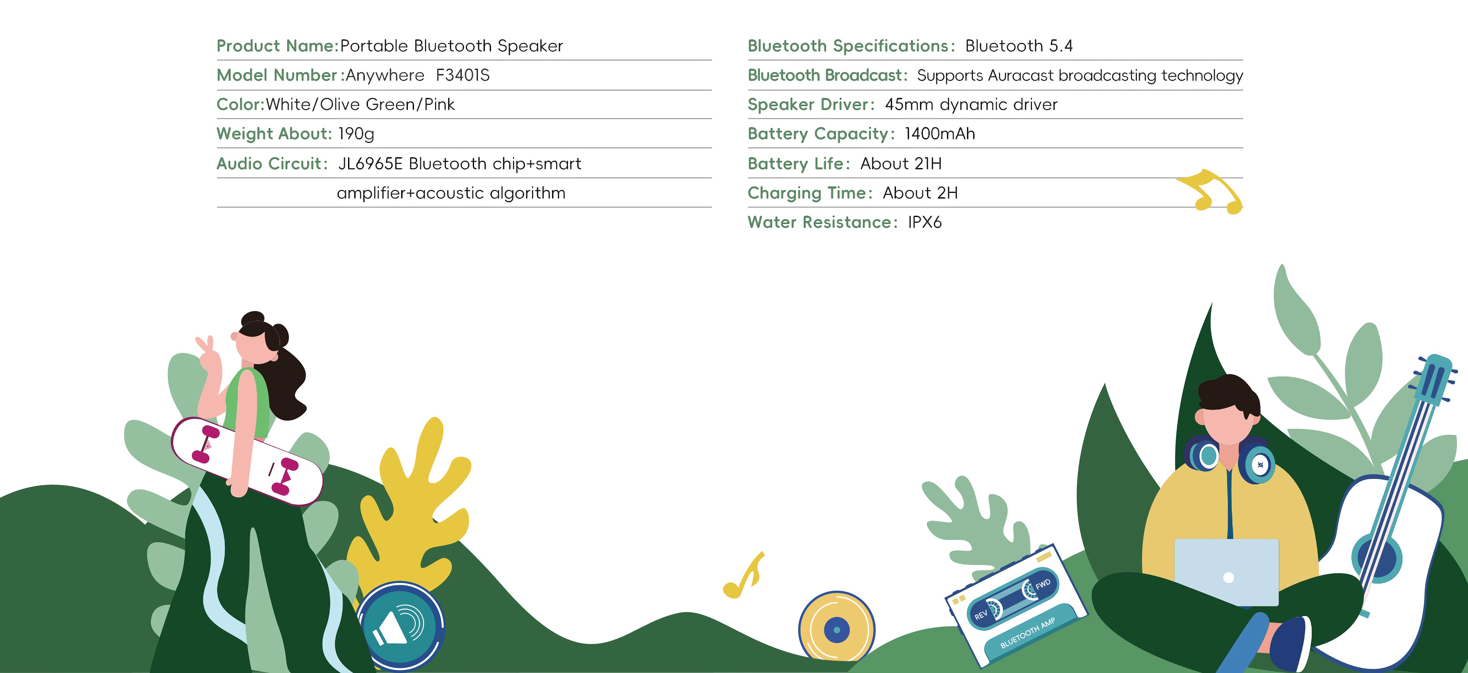 A készülék IPX6 vízállósági besorolással rendelkezik, ami alkalmassá teszi nedves környezetben történő használatra, például esőben vagy párás körülmények között. A hangszóró borítása megvédi a belső szerkezetet a fröccsenő víztől. Használhatod városban, a természetben vagy akár otthon is.