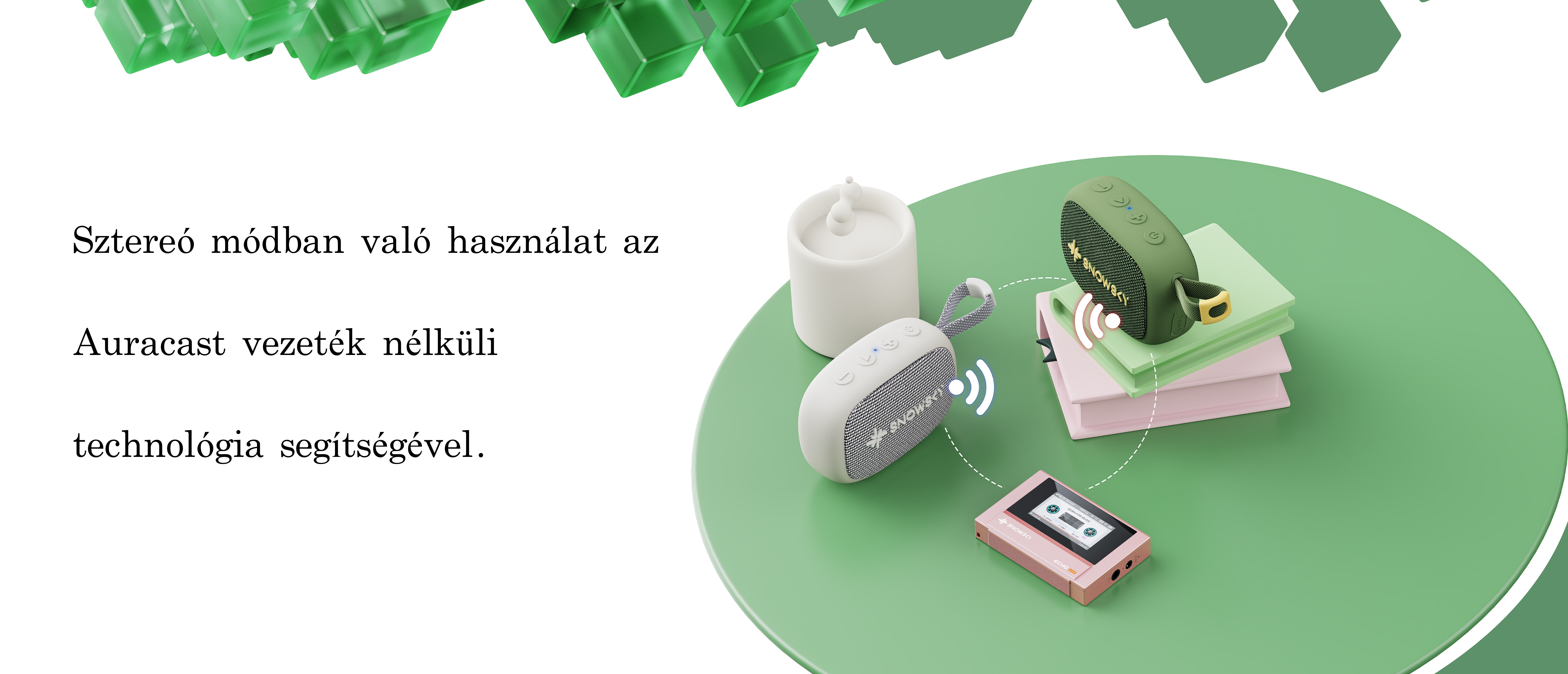 Sztereó élmény két Snowsky Anywhere hangszóró összekapcsolásával