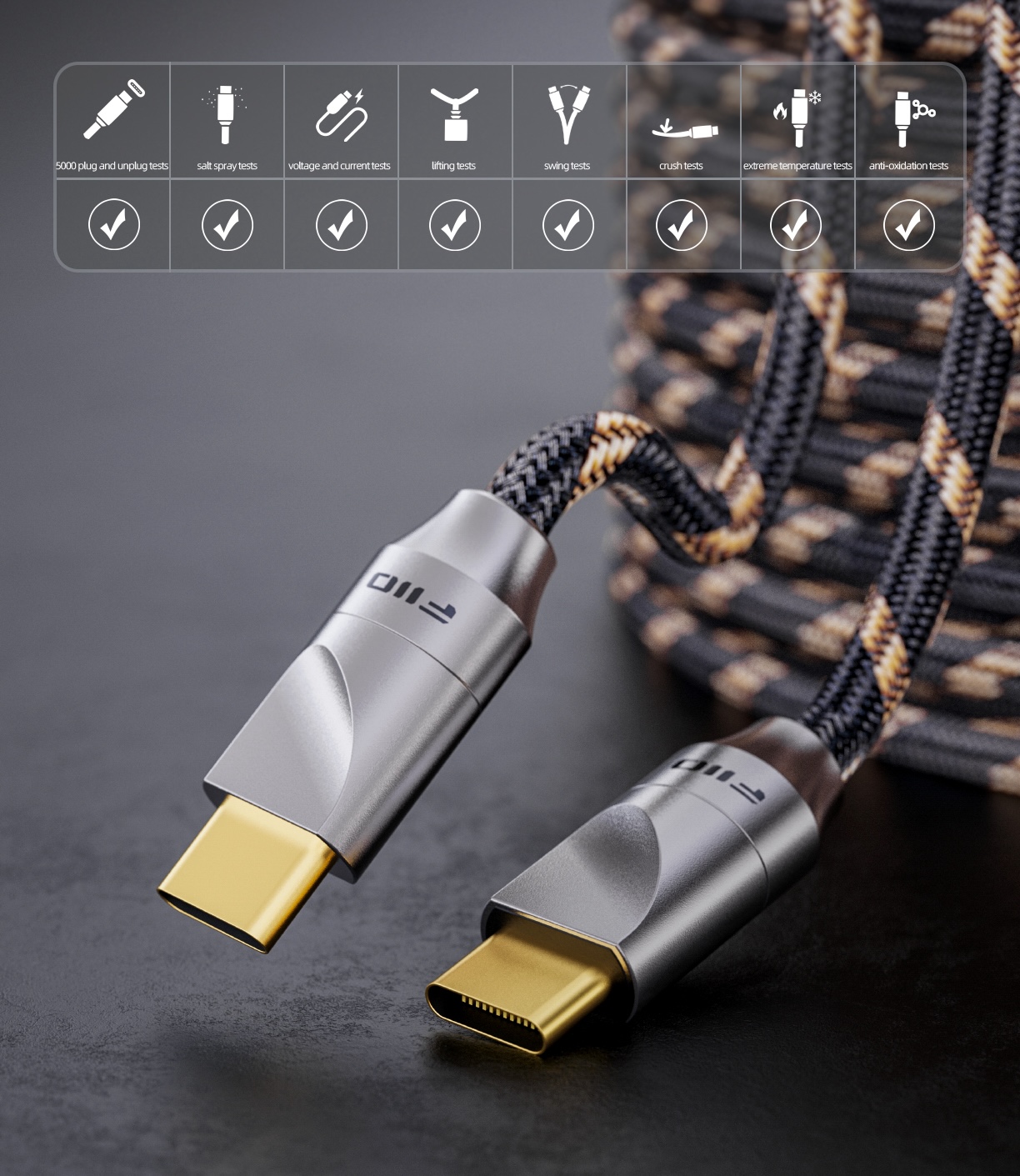 A kábel végén lévő, USB-C csatlakozók arany bevontatot kaptak. Ez a bevonat kevésbé oxidálódik, és jobban vezet, mint pl. a réz, így csökkentve a torzításokból adódó kellemetlenségeket.
