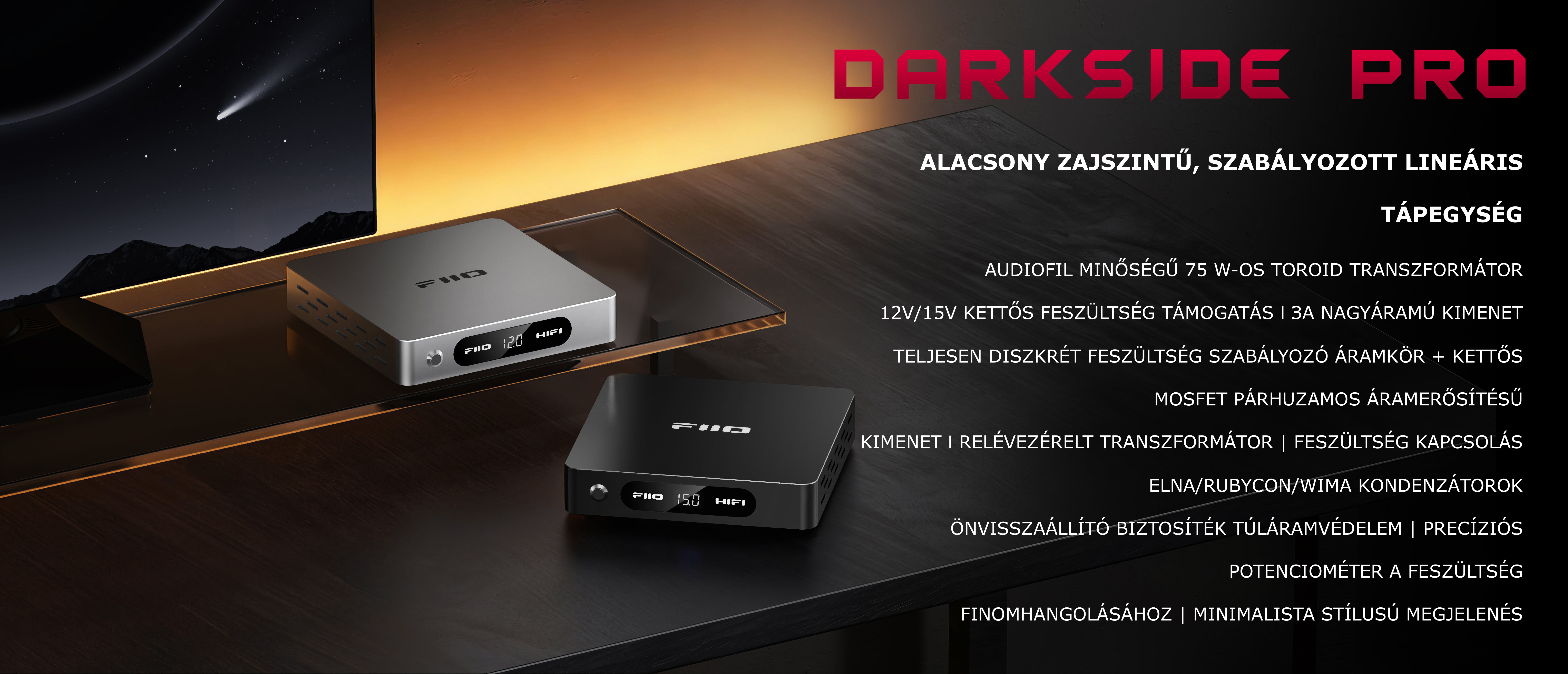 A FiiO Darkside Pro tápegység az alacsony zajszint mellett kifinomult dinamikát és pontos, meleg mélytartományt biztosít a hangképben.