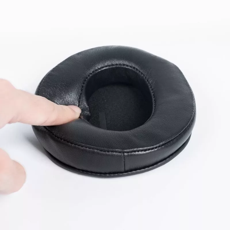 A fülpárna borítása természetes, lélegző bőrből készült. Jó érzés megérinteni, és az anyag textúrája is nagyon esztétikus.