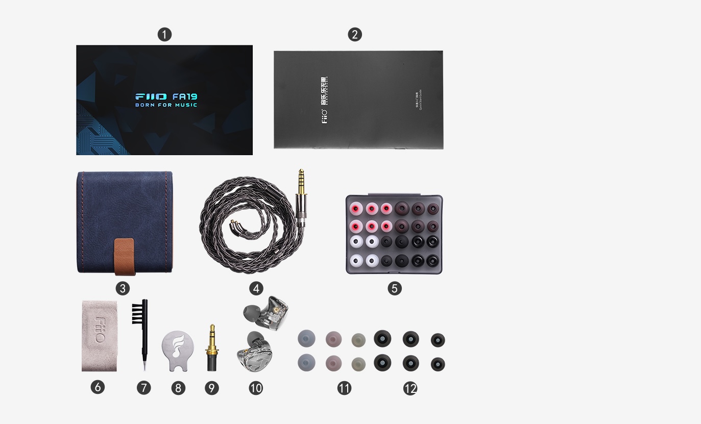 A FiiO FA19-ben elhelyezett, oldalanként tíz darab BA hangkeltő a FiiO és a Knowles folyamatos együttműködésének eredménye. A mélyeket 4 darab Knowles Bass BA szólaltatja meg. A közepek tisztaságáért két Knowles Mid BA felel. A magasak gazdag és részletező hangzásáról 4 Knowles SWFK Treble hangkeltő gondoskodik. Az összehangolt csapatmunka eredménye egy tökéletesen tiszta, hangverseny minőségű hangzás.