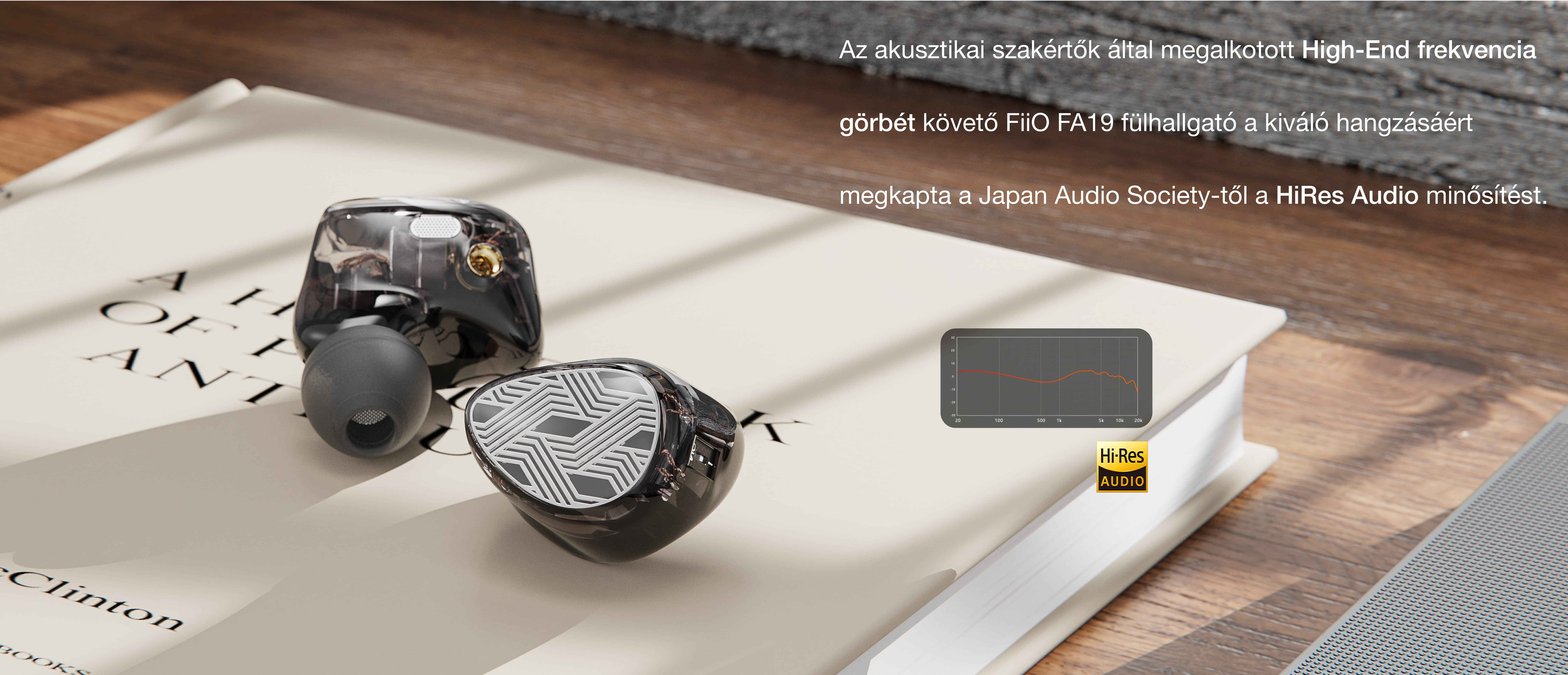 Az akusztikai szakértők által megalkotott High-End frekvencia görbét követő FiiO FA19 fülhallgató a kiváló hangzásáért megkapta a Japan Audio Society-től a HiRes Audio minősítést.