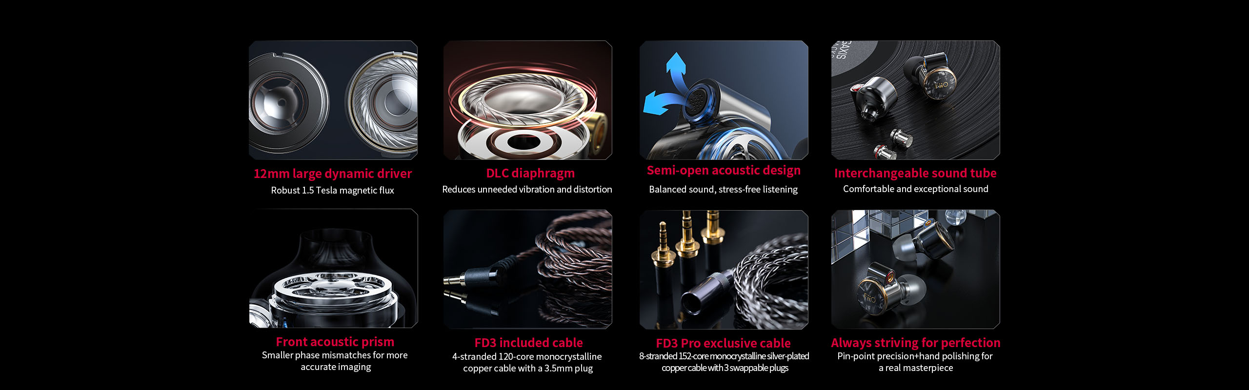 Az FD3 fülhallgató a népszerű hagyományos meghajtó kialakítással forgalomba kerülő FD sorozat új tagja. Az egy driver-es kialakítás ennél a típusnál egy DLC (Diamond-Like Carbon - gyémánt-szerű szénszál) meghajtót takar, mely egy olyan dinamikus meghajtó, amely megdöbbentően könnyű, ugyanakkor rendkívül merev is, ezáltal ellenáll a nemkívánatos rezonanciáknak. A végeredmény a kiemelkedő hangminőség nagyon alacsony torzítás mellett és extraként rendkívüli érzékenységgel rendelkezik, melynek köszönhetően könnyen meghajtható bármilyen forrás eszköz által. Az említett felső kategóriás meghajtó 12 mm átmérőjű, melynek lelkét egy 1,5 Tesla mágneses indukcióval működő mágnes adja.
