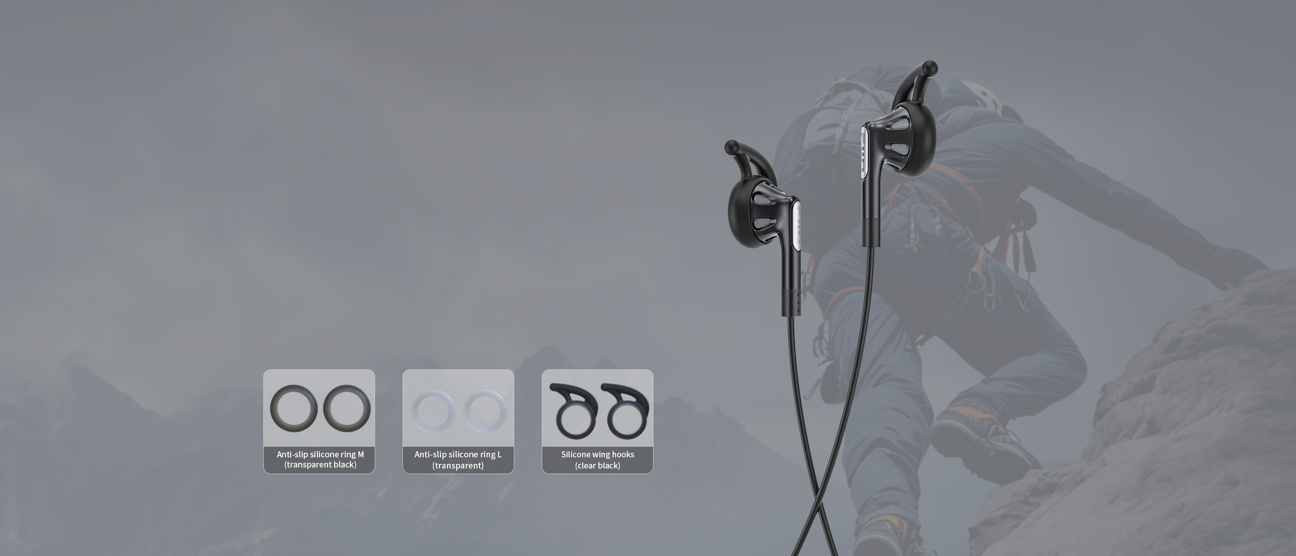 Ha fülpárna nélkül használjuk az FF1-et, akkor a közepes és nagy (M és L) méretű, kicsúszásgátló szilikongyűrű mellett válaszható a kampós típus is. Utóbbi a fülkagyló görbületét követi, megakadályozva a hangszórók kiesését pl. sportolás közben.