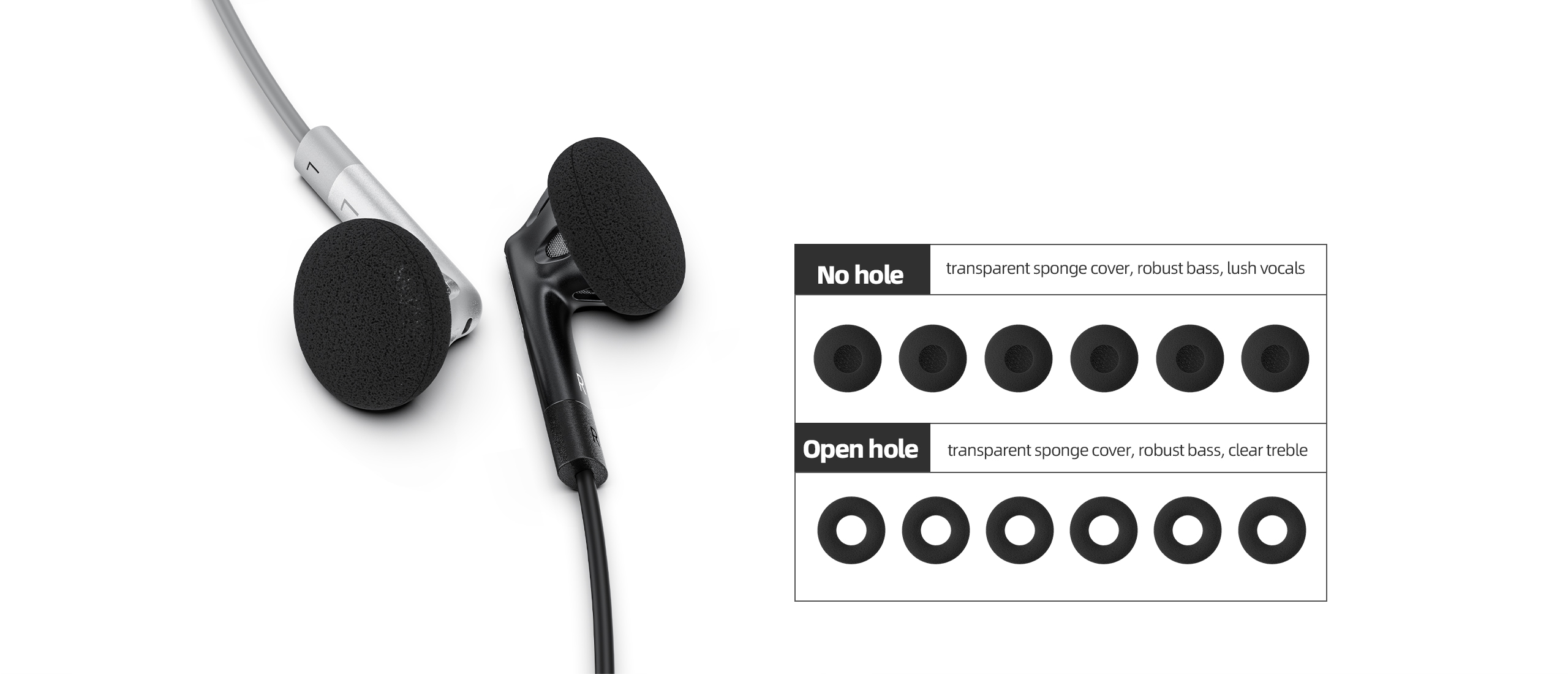 Az FF1 csomagjában két fülpárna típus van: lyukas és zárt. Fülpárnák nélkül kb. 38 Hz-től indul az FF1-gyel hallgatható frekvencia tartomány. Az ennél alacsonyabb frekvenciájú, mély intenzív zeneszámokhoz érdemes a zárt (nem lyukas) fülpárnával használni az FF1-et.