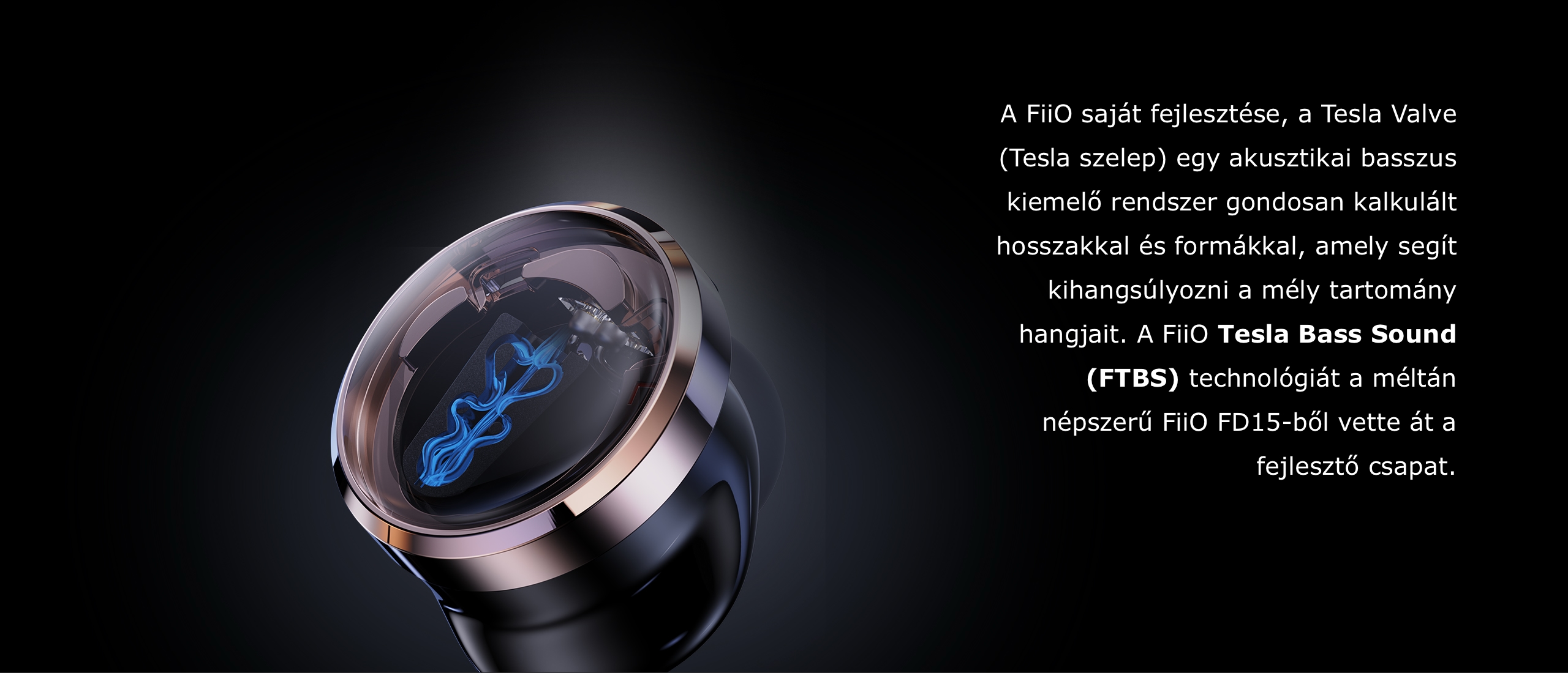 A FiiO saját fejlesztése, a Tesla Valve (Tesla szelep) egy akusztikai basszus kiemelő rendszer gondosan kalkulált hosszakkal és formákkal, amely segít kihangsúlyozni a mély tartomány hangjait. A FiiO Tesla Bass Sound (FTBS) technológiát a méltán népszerű FiiO FD15-ből vette át a fejlesztő csapat.