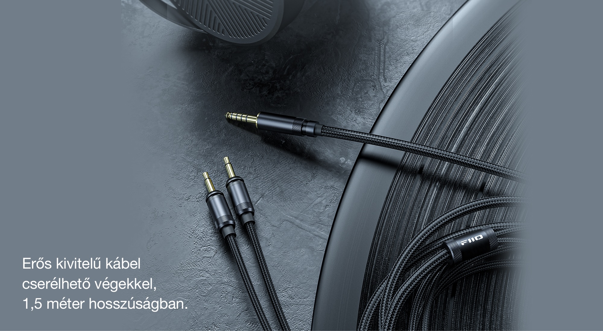 A fejhallgató kábele 1,5 méter hosszúságú, így akit zavart az FT3 (350 Ω) kábelhossza, annak ez a termék megnyugvást hoz a rövidebb kábelével.