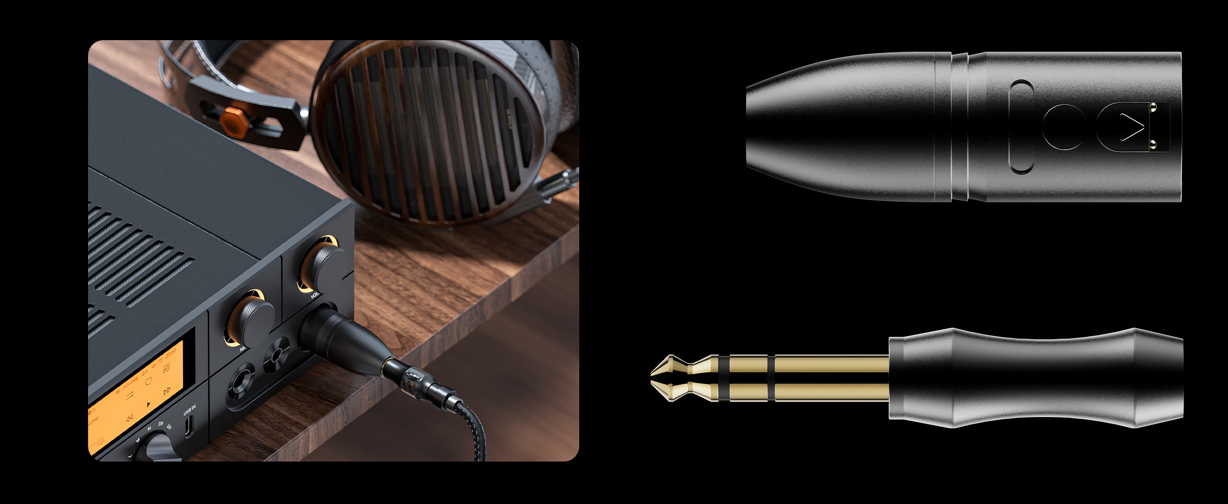 Az FT7 egy 4,4 mm-es jack csatlakozóval ellátott, szimmetrikus kábellel érkezik. Két adapter található az FT7 csomagjában: