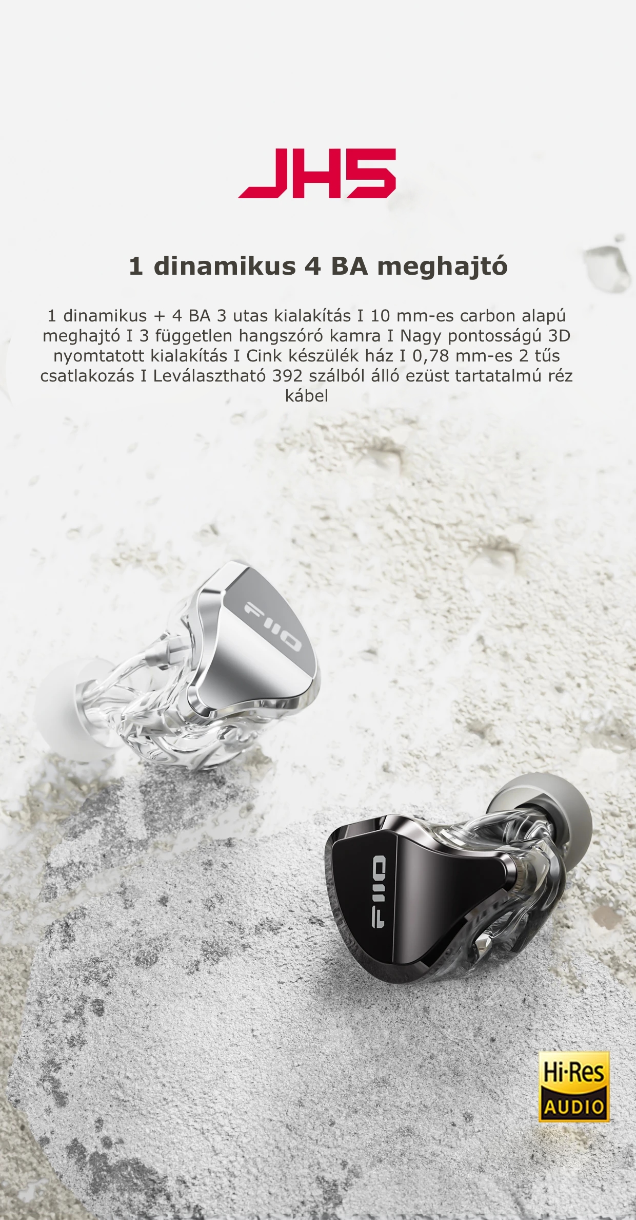 A JH5 egy valóban megfizethető IEM (hallójárati monitor) fülhallgató, kiemelkedően pontos hangzással, mely megmutatja, hogy mennyire tökéletes élményt tud nyújtani a dinamikus + BA kialakítású hibrid fülhallgató technológia.