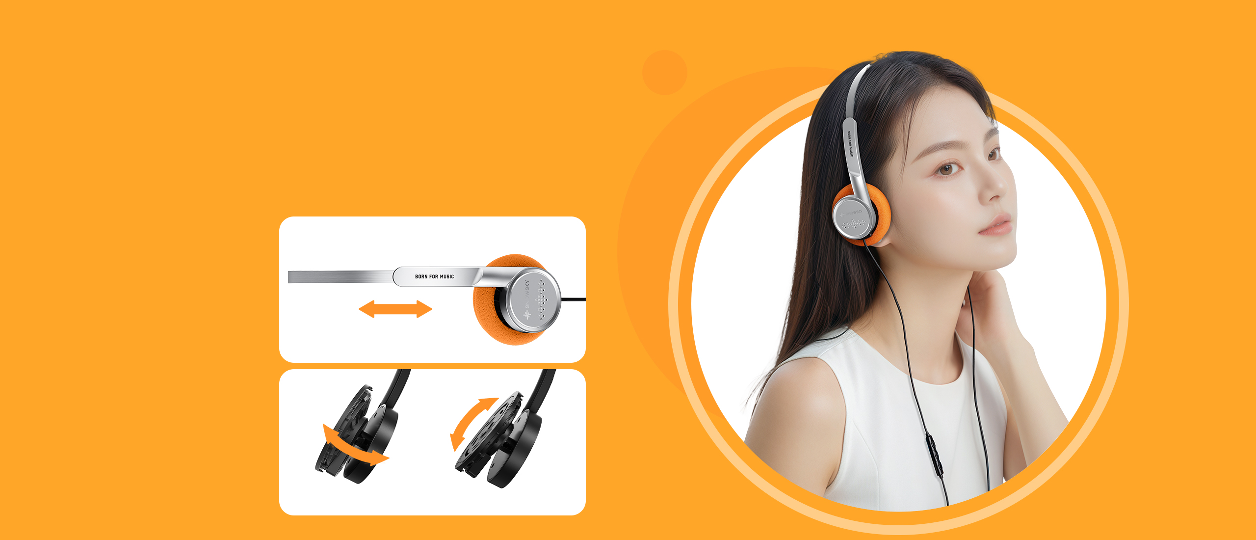 A ki-/becsúsztatható szár és a billenő hangszórók kényelmesen illeszkednek a fejre.