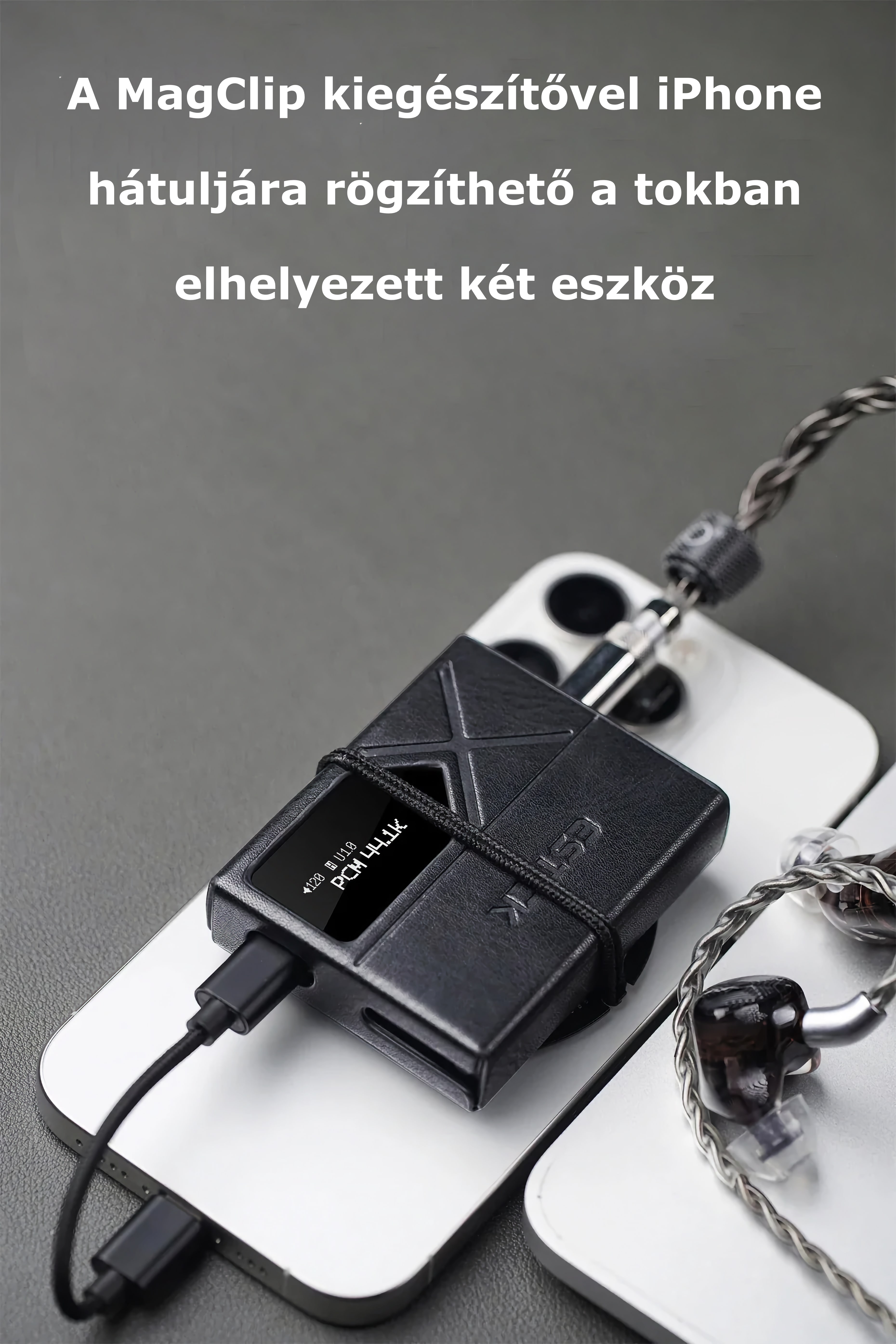 A tartozékként megrendelhető MagClip mágneses kiegészítővel MagSafe kompatibilis iPhone vagy a mellékelt mágnessel bármilyen okos telefon hátuljára is rögzíthető.