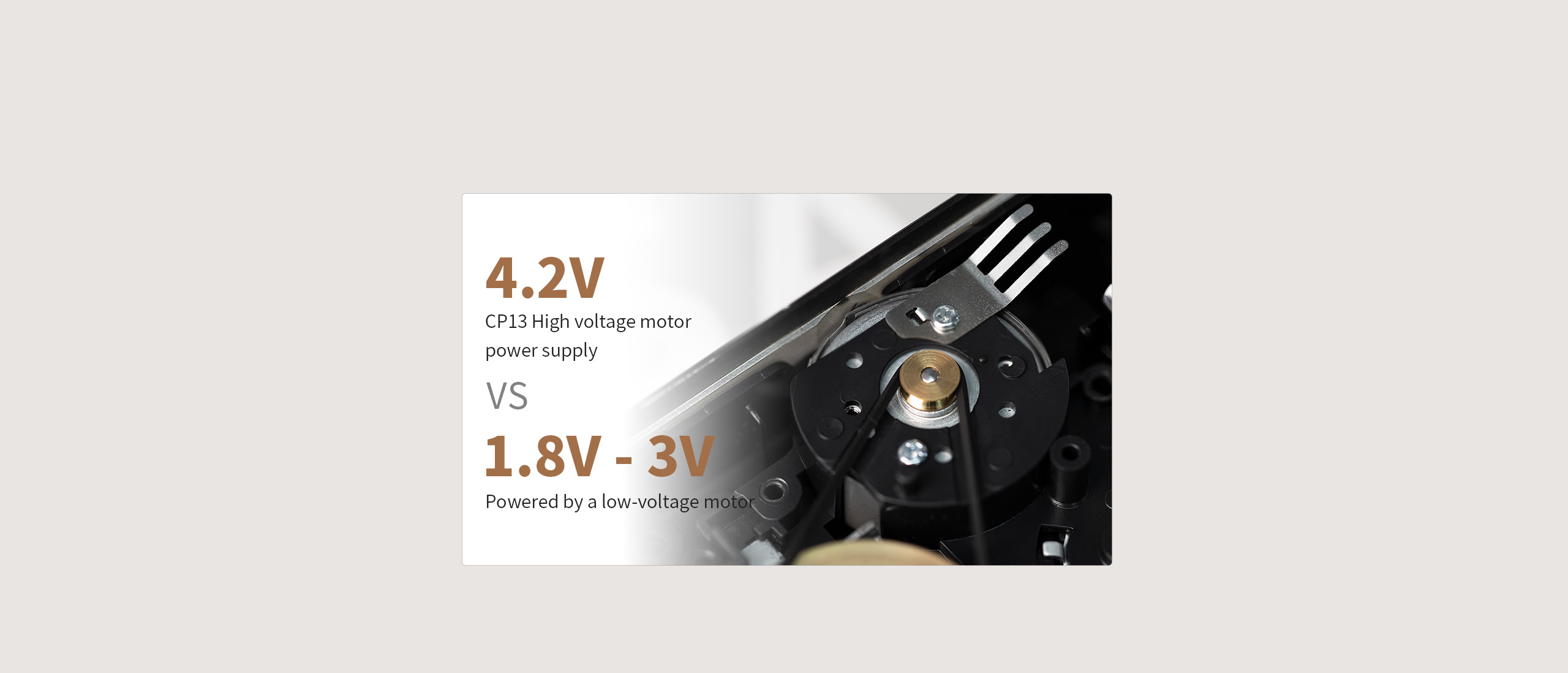 A FiiO CP13 lejátszó szíve egy extra erős, 4.2 voltos motor speciális vezérlő elektronikával.
