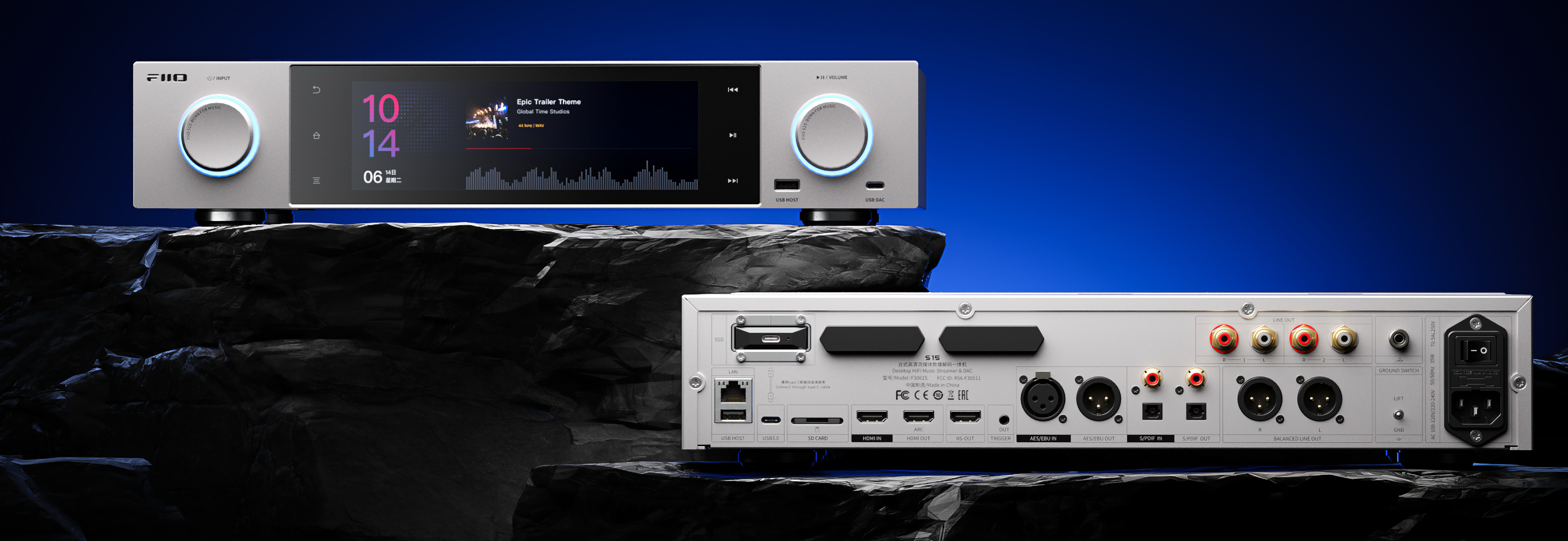 A FiiO S15 fekvő elrendezése újdonság a FiiO többfunciós termékei között. Az előlapon elhelyezett, hatalmas kijelző mellett két többfunkciós gombot is kapott.