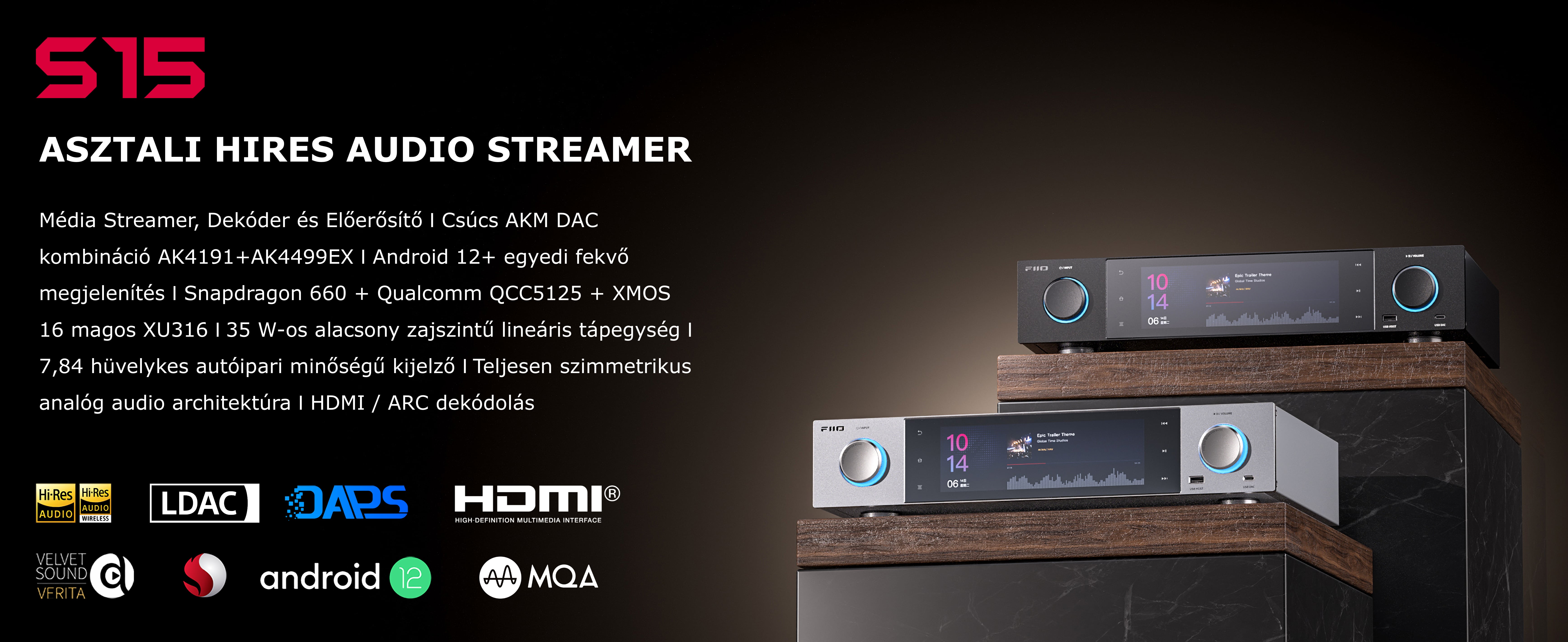 Használhatjuk helyi vagy internetes zenei gyűjtemény lejátszójaként, D/A átalakítóként (DAC) vagy egyszerű előerősítőként is. (Fejhallgató erősítőt nem tartalmaz az S15)