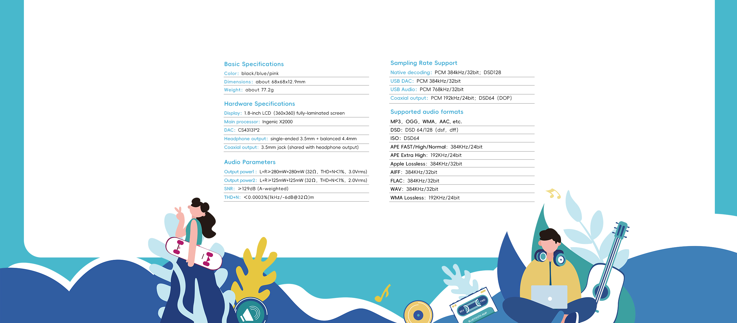 Chipkészlet: Ingenic X2000, DAC: CS43131*2