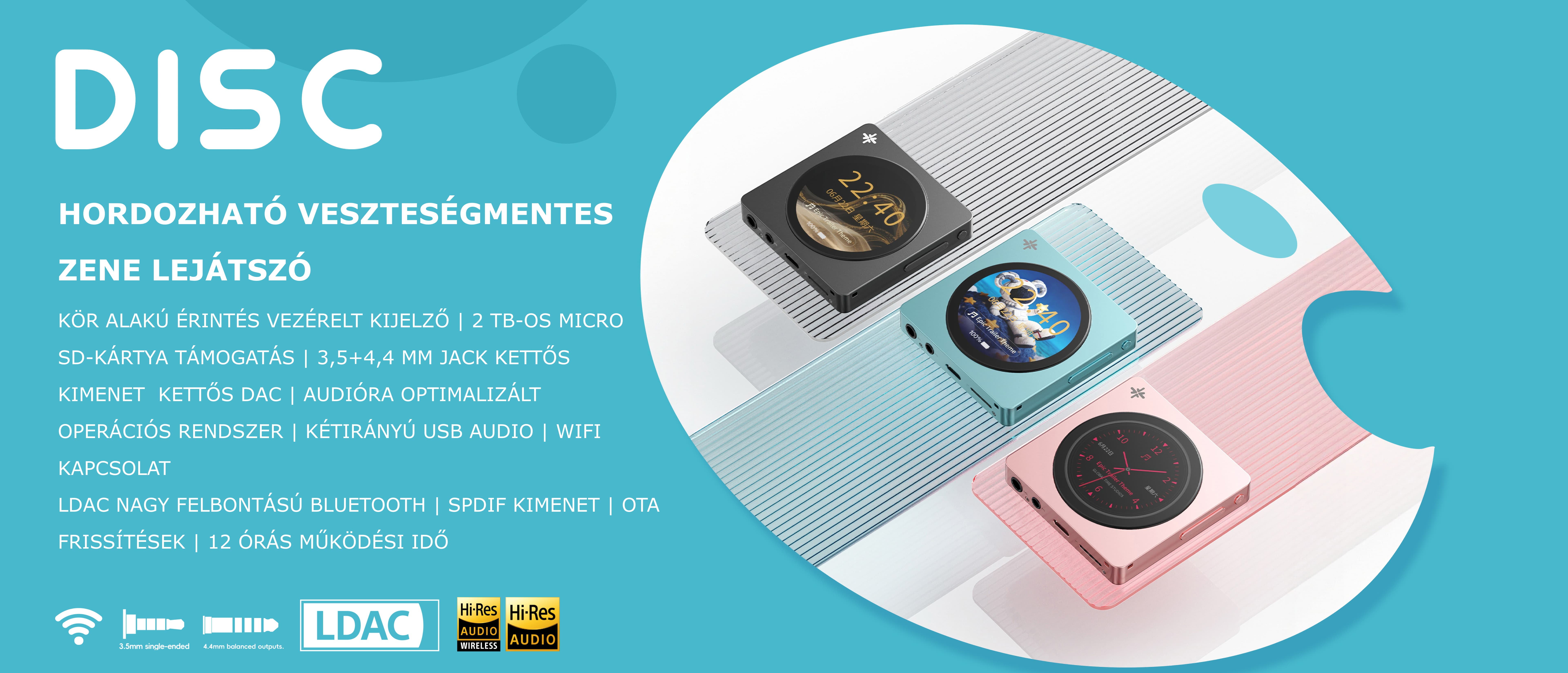 A Disc veszteségmentes lejátszó dupla CS43131 DAC chipet használ egy teljesen szimmetrikus audió áramkörben, a fejhallgató-erősítőhöz pedig független tápellátás tartozik. A 2 x 280 mW-os kimeneti teljesítmény a határokig hajtja a fejhallgatódat, így a zene minden rejtett részletét meghallhatod.