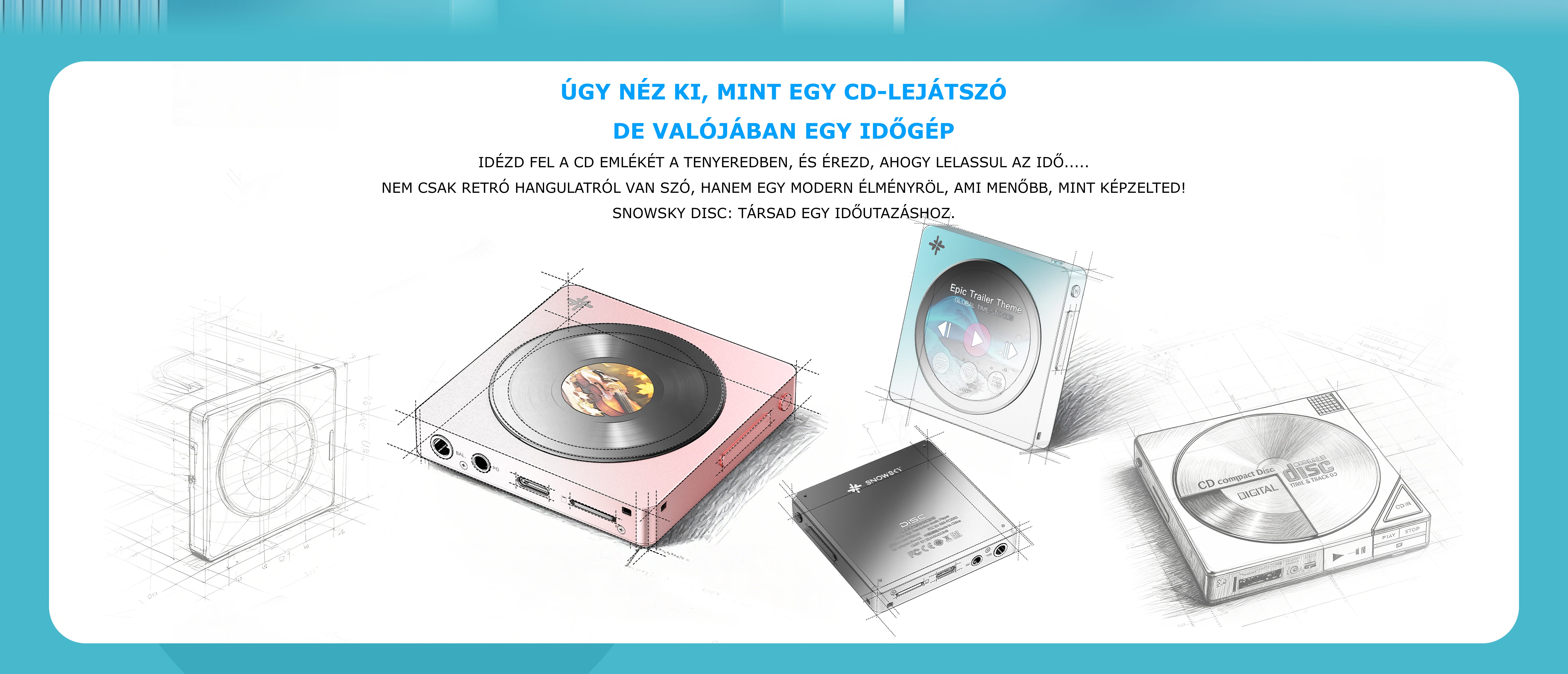 A Snowsky Disc úgy néz ki, mint egy kicsi CD-lejátszó, de valójában egy időgép. Ez az eszköz nem csak a retro életérzésről szól, hanem egy olyan modern élményről, ami menőbb, mint képzelnéd. Az ultravékony alumíniumötvözet ház selymesen sima felületét jó érzés kézben tartani, a hanglemez alakú képernyő megérinti a szívedet.
