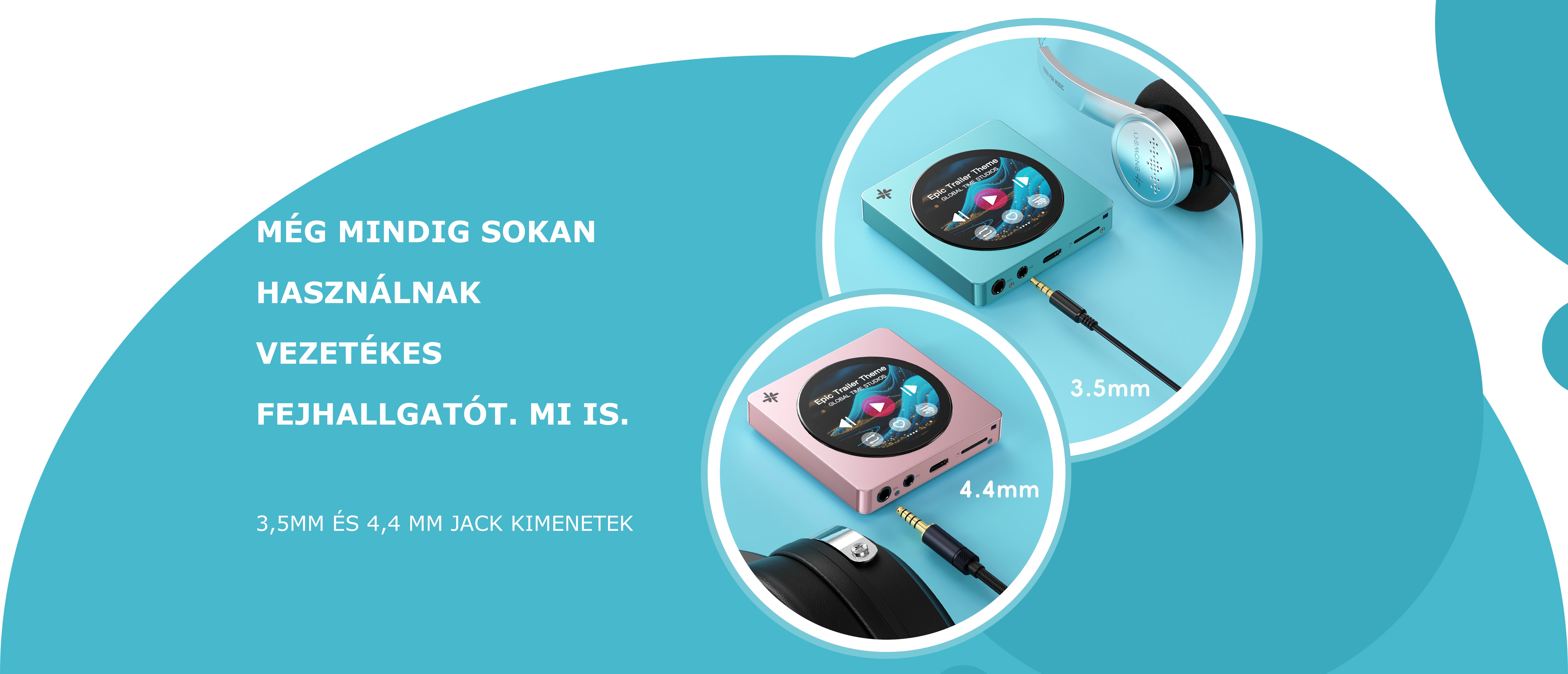 Vezetékes fülhallgatókhoz a lejátszót 3,5 mm-es aszimmetrikus és 4,4 mm-es szimmetrikus kimenetekkel szereltük fel.