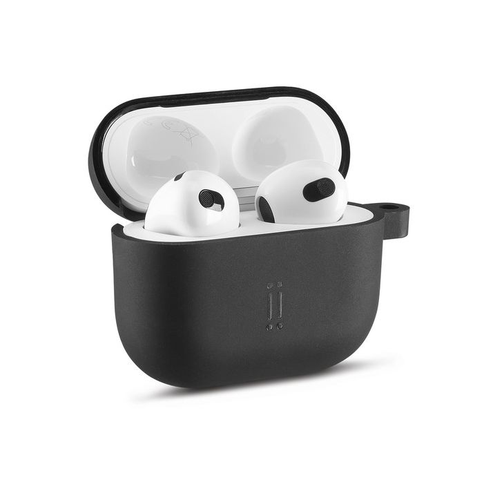 A műanyag tok némileg vastagítja az AirPods (3. generáció) megjelenését, de ez bármelyik tok esetén meglévő paraméter. Jobb oldalán egy kör alakú rögzítő hurok található, amelyre a mellékelt alumínium karabinert tudjuk felhelyezni. A karabiner segítségével ruházaton, táskán, bármilyen pánton könnyen rögzíthetjük az AirPods (3. generáció) terméket, így biztonságban tudjuk szállítani, illetve táskán belül rögzítve keresgélnünk sem kell, mert kéznél van, ha szükségünk van rá.