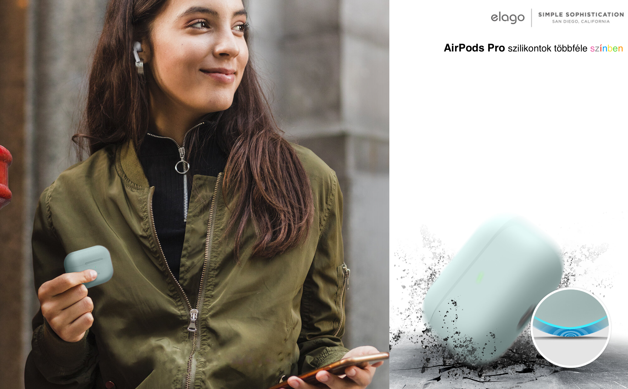 Az Elago AirPods Pro Silicone Case termékvonal változatos színekben érhető el a fehértől a rózsakvarcon és indigókéken át a feketéig. A tok kialakítása a vékonyságot és védelmet tartja szem előtt. Hozzáférhetővé teszi a Lightning csatlakozót. A felső része rászorul a tok tetejére, különálló egységet képez a tok alsó részével, így könnyítve a felnyitást, és csökkentve a tok sebezhetőségét az összeillesztéseknél való elszakadás esélyének kizárásával.