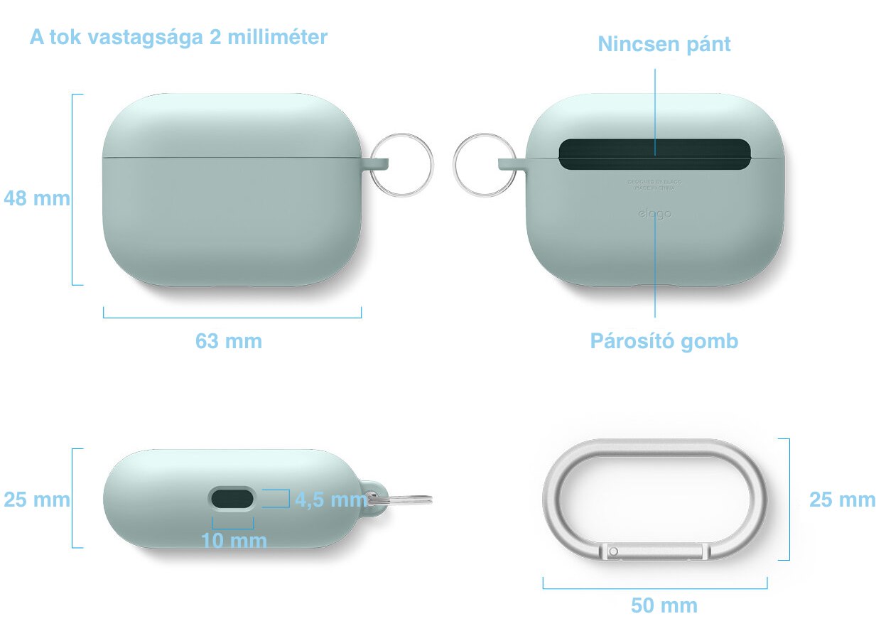 Az Elago AirPods Pro Silicone Hang Case termékvonal változatos színekben érhető el a fehértől a rózsakvarcon és indigókéken át a feketéig. A tok kialakítása jót átgondolt: A tok kialakítása jót átgondolt: hozzáférhetővé teszi, de el is fedi a Lightning csatlakozót, hogy azt védje a szennyeződésektől. A felső része rászorul a tok tetejére, különálló egységet képez a tok alsó részével, így könnyítve a felnyitást, és csökkentve a tok sebezhetőségét az összeillesztéseknél való elszakadás esélyének kizárásával.