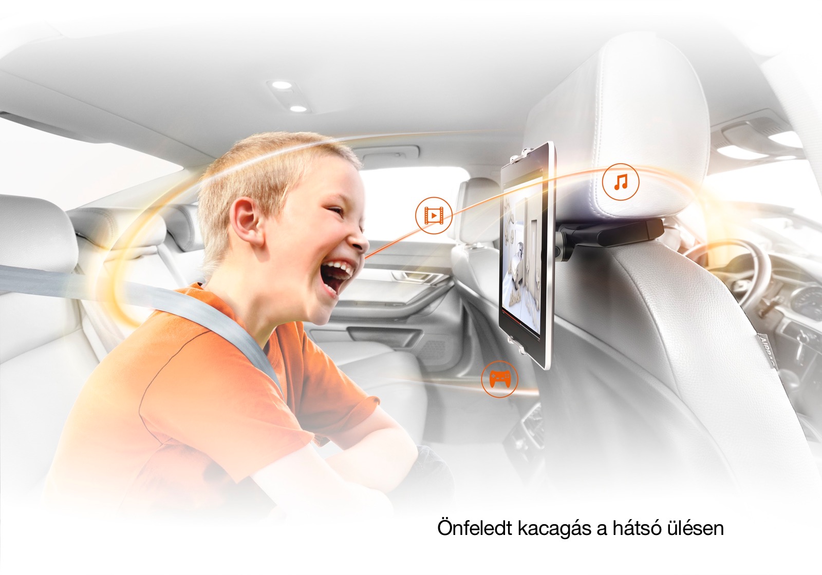 Az autó hátsó ülésein utazni sokkal hosszabb lehet, mint amilyennek a vezetés tűnik, főleg ha kevésbé izgalmas tájakon gyermek társaságban utazunk. A Vogel’s erre a jogos igényre reagálva alkotott egy olyan tartó megoldást, amely az első ülés fejtámlájának fém rudazatán rögzíthető, és kimondottan a hátsó ülésen utazók számára használható.
