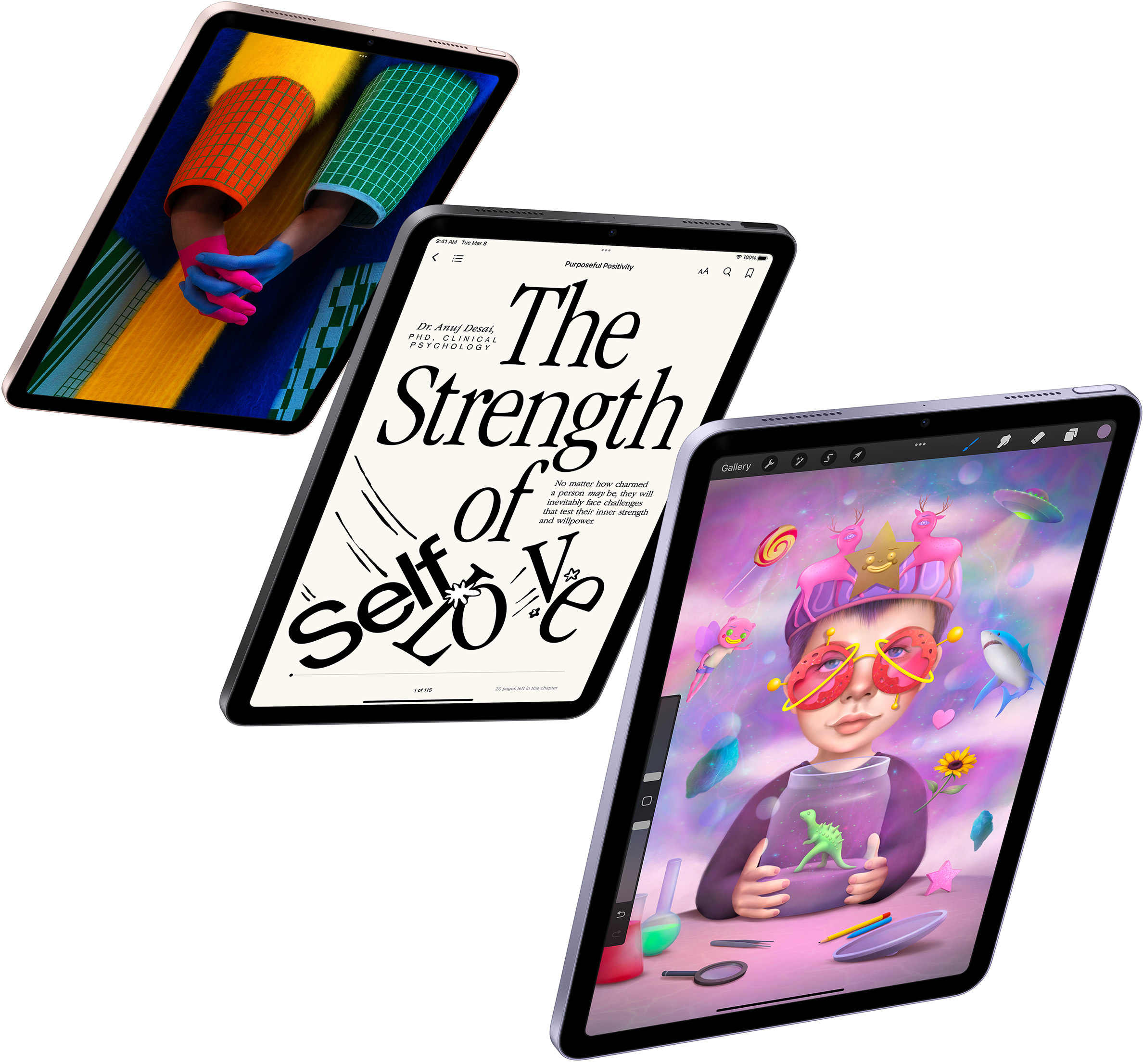 Az iPad Air termékcsalád kiemelkedő teljesítményt, nagy méretű kijelzőket, modern Apple Pencil kompatibilitást és látványos színeket kínál a mobil kreativitáshoz.