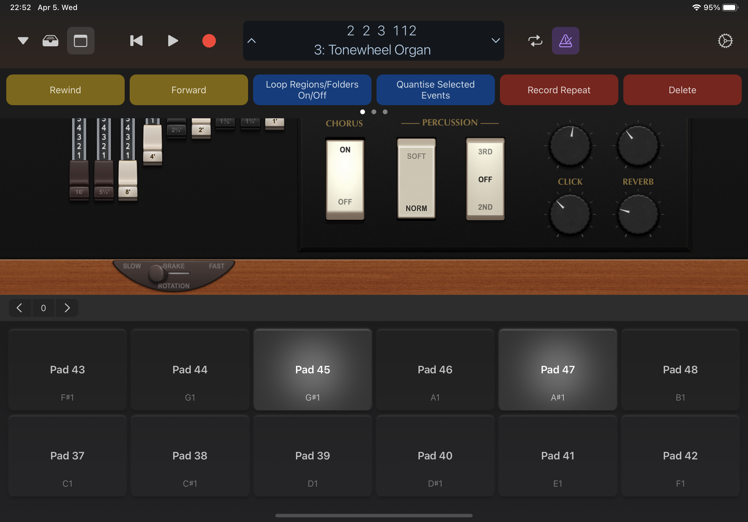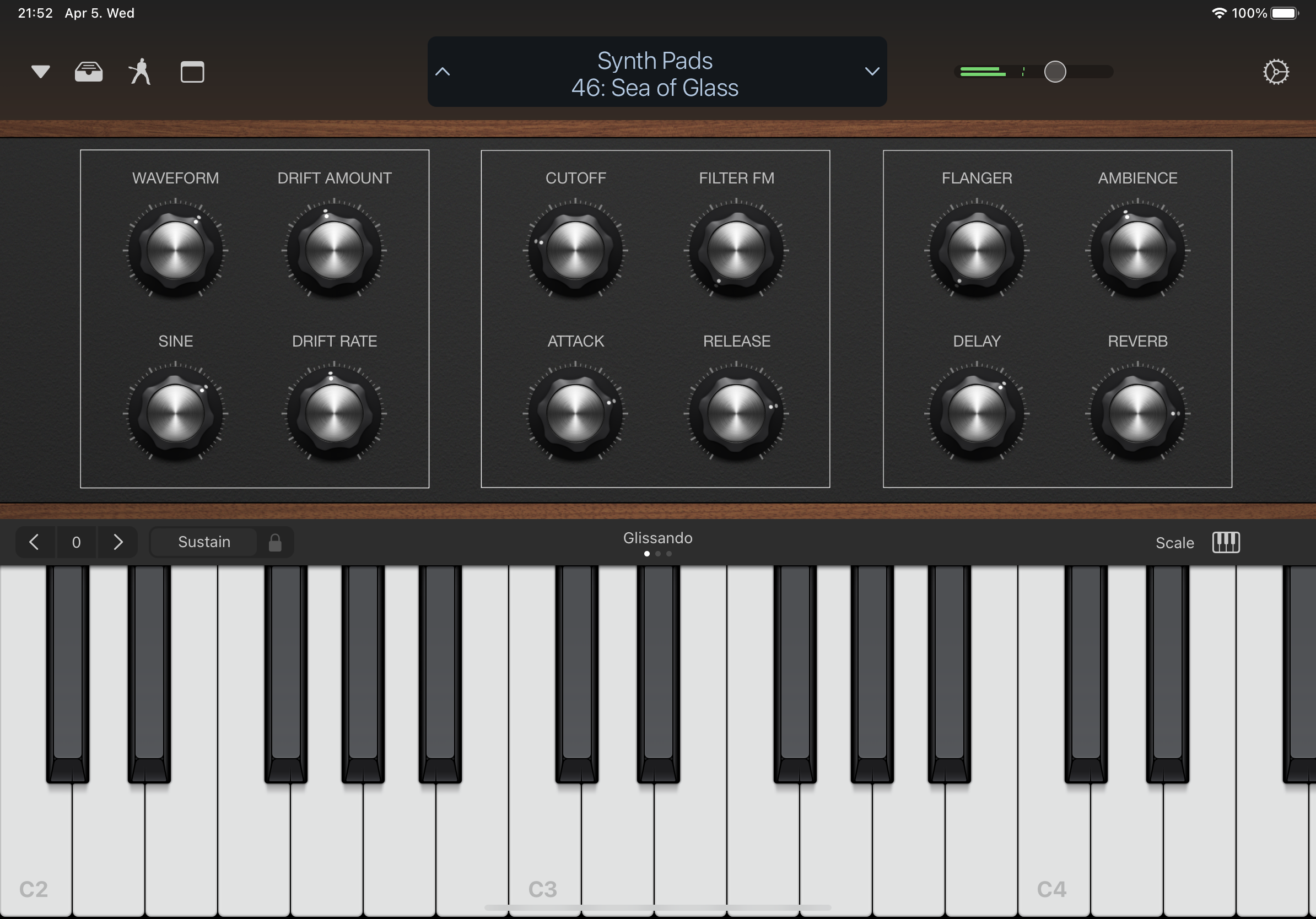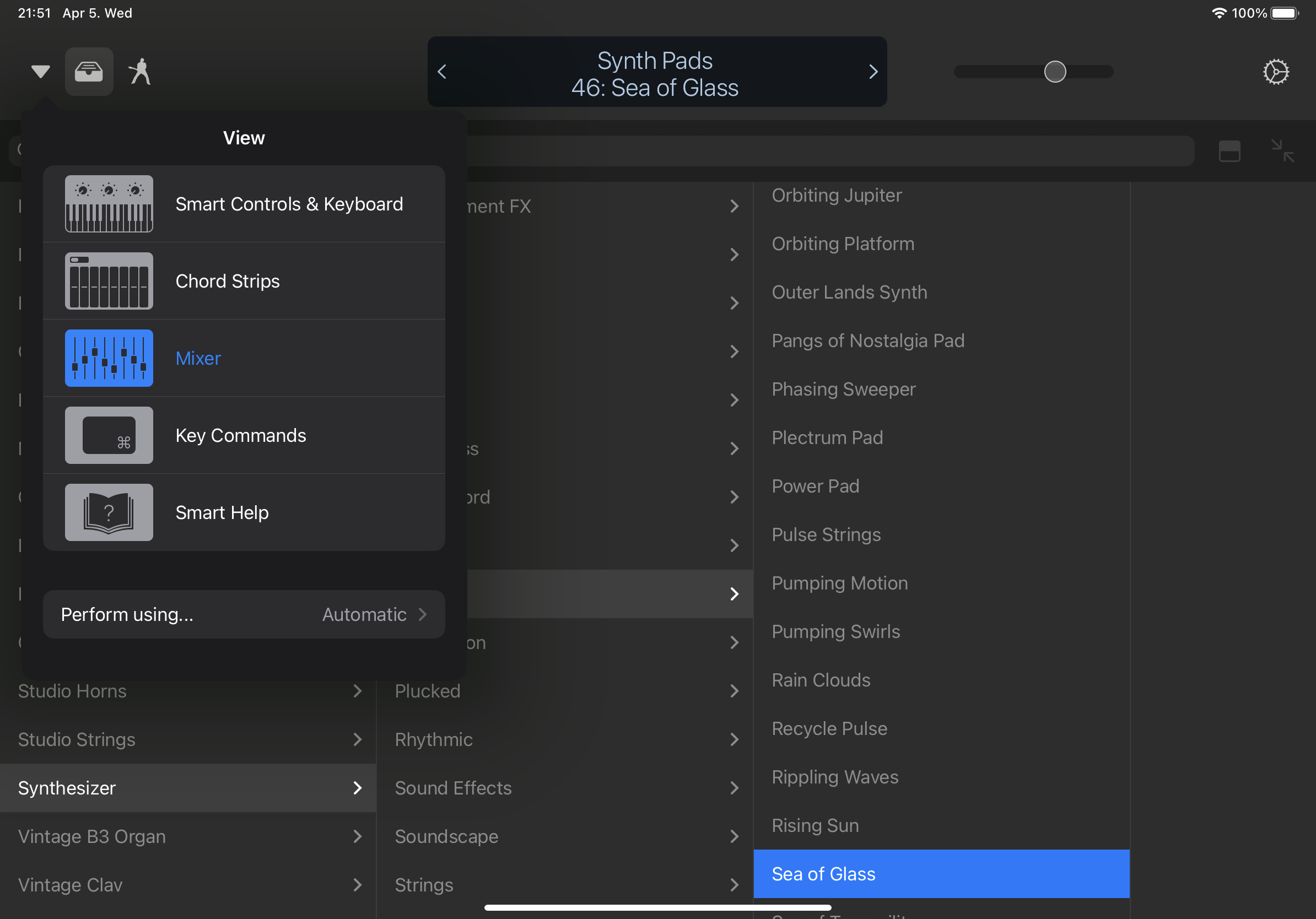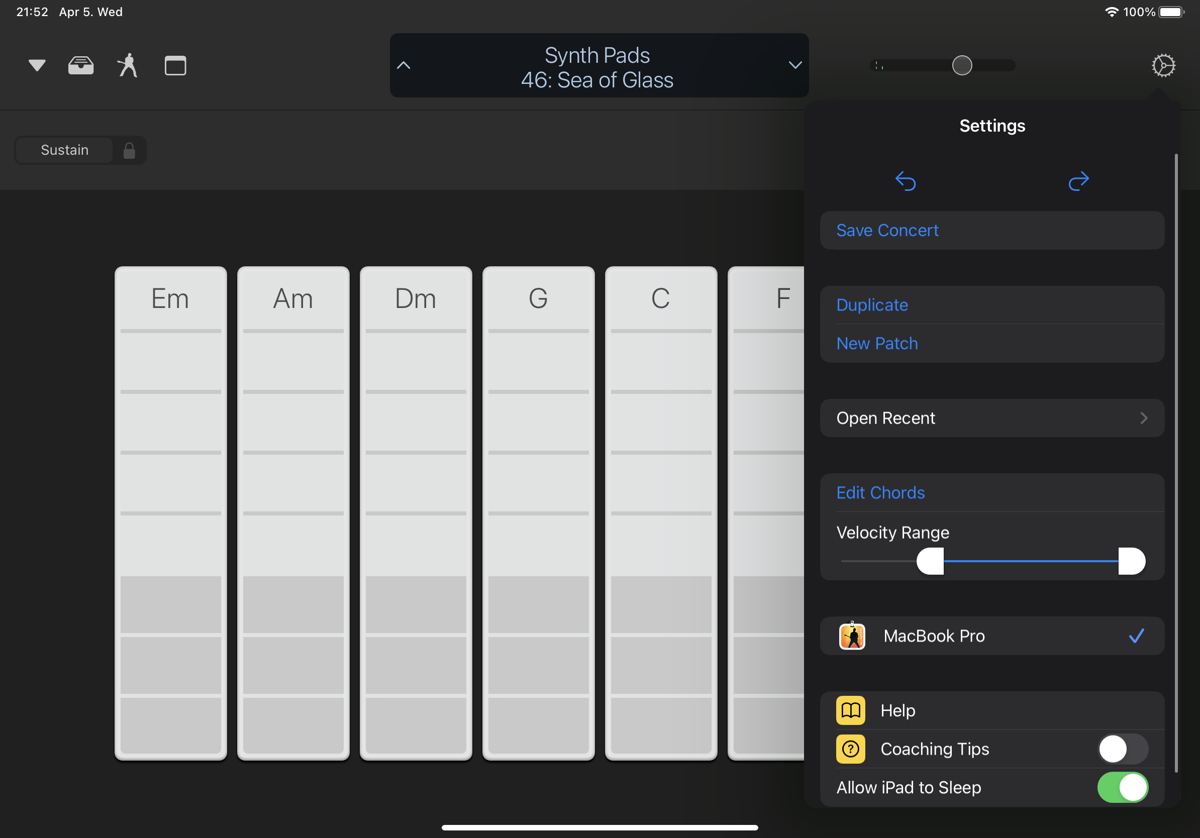 Egy bökéssel elérhetjük és játszhatunk a Chord Strip nézetben megjelenő hangszereken, amelyek közt gitárok, basszusgitárok, vonósok és billentyűsök is elérhetőek. Ezeken ugyanúgy lehet játszani, mint a virtuálisan megjelenő zongorán vagy húrokon, de másfajta megközelítéssel, kifejezetten az érintőkijelzőre alkotva teszi lehetővé a játékot. Azaz nem egy létező hangszert mintáz virtuálisan, hanem a létező hangszer hangját érjük el teljesen másfajta, sávos felépítésű felületen. Ezt a módot a View / Nézet gombra bökve megjelenő menüből érhetjük el a Chord Strip kiválasztásával. A fogaskerékre bökve tudjuk módosítani, hogy milyen hangszeren játsszunk.