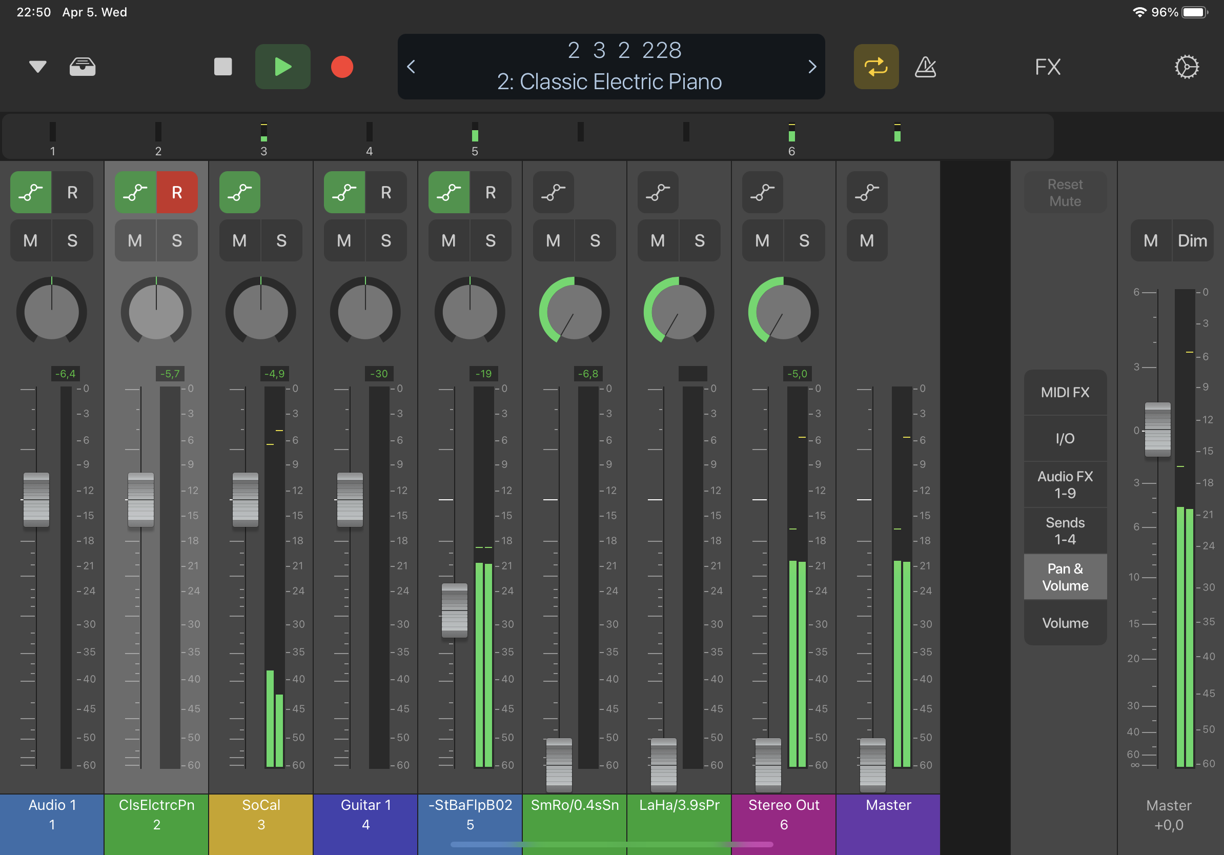 Cellák élesítésével és jelenetek közti váltással tudunk a Live Loops (élő ismétlődő hangminták) kínálatából használva zenei tartalmat létrehozni.