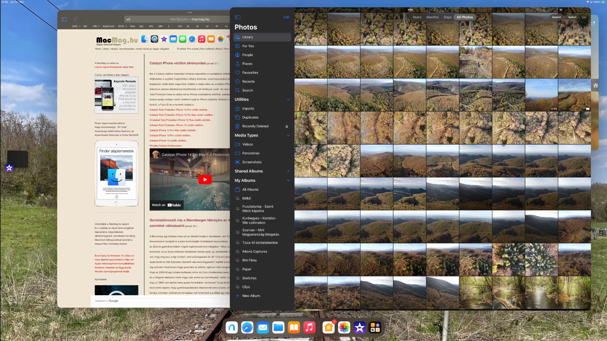 Ezt követően a macOS rendszerhez hasonlatos többablakos élményben lehet részünk, ráadásul az ablakok nagyban hasonlítanak a számítógépen megszokott megjelenésükhöz. Az ablakok tetején lévő három pötty révén pedig az iPadOS klasszikus többablakos nézetei, illetve a teljes képernyős mód között válthatunk, így ha például az iPad Pro készüléken futó iMovie programban szeretnénk alkotni 6K felbontásban, akkor arra is lehetőségünk van, hogy a teljes kijelzőt felhasználjuk erre a célra.