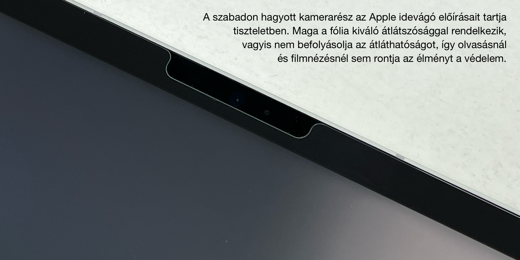 Az AIINO RockGlass a készülékek széléig kiér, de a kamera részt, beleértve az iPad Pro modellek Face ID azonosító szenzorait szabadon hagyja. Bár az üveg nagy tisztaságú és kiváló átlátszósági paraméterekkel rendelkezik, az iPad modellek esetén az Apple megköveteli azt, hogy a fólián ezen a helyen kivágás legyen.