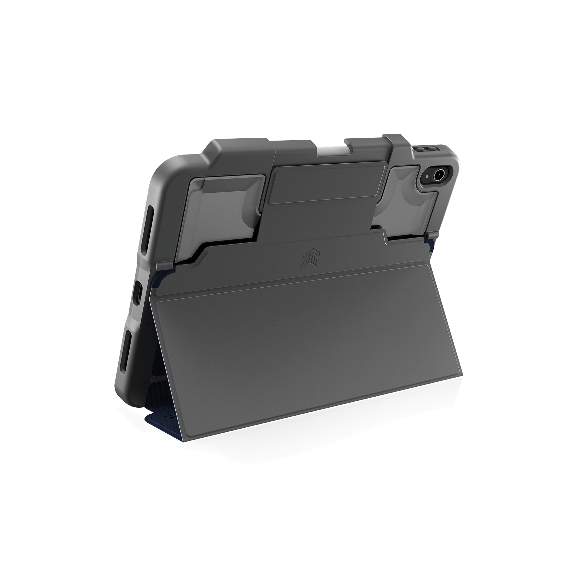 Az STM Dux Plus iPad 11 (10. és 11. generációs) tok alapja egy erőteljes polikarbonát váz, amelyet poliészter külső borít. A belső váz rendkívül erős, és az iPad 11 (10. és 11. generációs) mellett a hozzá illeszkedő Apple Pencil 1 védelmére és stabil megtartására is alkalmas.