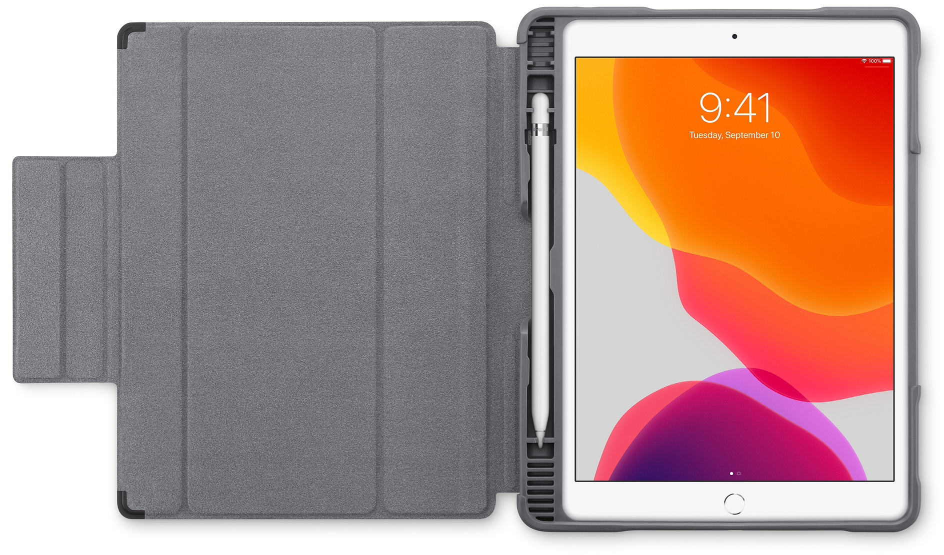 Az STM Rugged Plus előlapja többféle színben elérhető, és az állvány funkció kulcseleme: tájkép módban fektethető és felállítható az iPad, így pötyögni és rajzolni éppúgy kényelmesen tudunk, mint filmet nézni a segítségével. Az előlap pedig a rajta lévő pánt jóvoltából határozottan becsukódik és úgy is marad, nem nyílik ki véletlenszerűen.