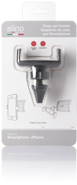 Az AINO Easy Car Holder autós tartó roppant egyszerű kialakítású, ám funkciójára tökéletes megoldást nyújt az iPhone készülékek számára. A segítségével akár a tokban tárolt iPhone modelleket is el tudjuk helyezni az autóban a szellőzőrácson. Az eszköz hátoldalán lévő négy gumitüske megfelelő erővel szorítja be a rácsra a tartót, amely így kiválóan megkapaszkodik, és biztonsággal tartja az iPhone készüléket. Mivel a AIINO Easy Car Holder rugalmasan nyújtható, így az iPhone akár vékonyka tokban is elhelyezhető benne. A telefonnal érintkező felületek gumi bevonatúak, így garantáltan karcmentes a tárolás.