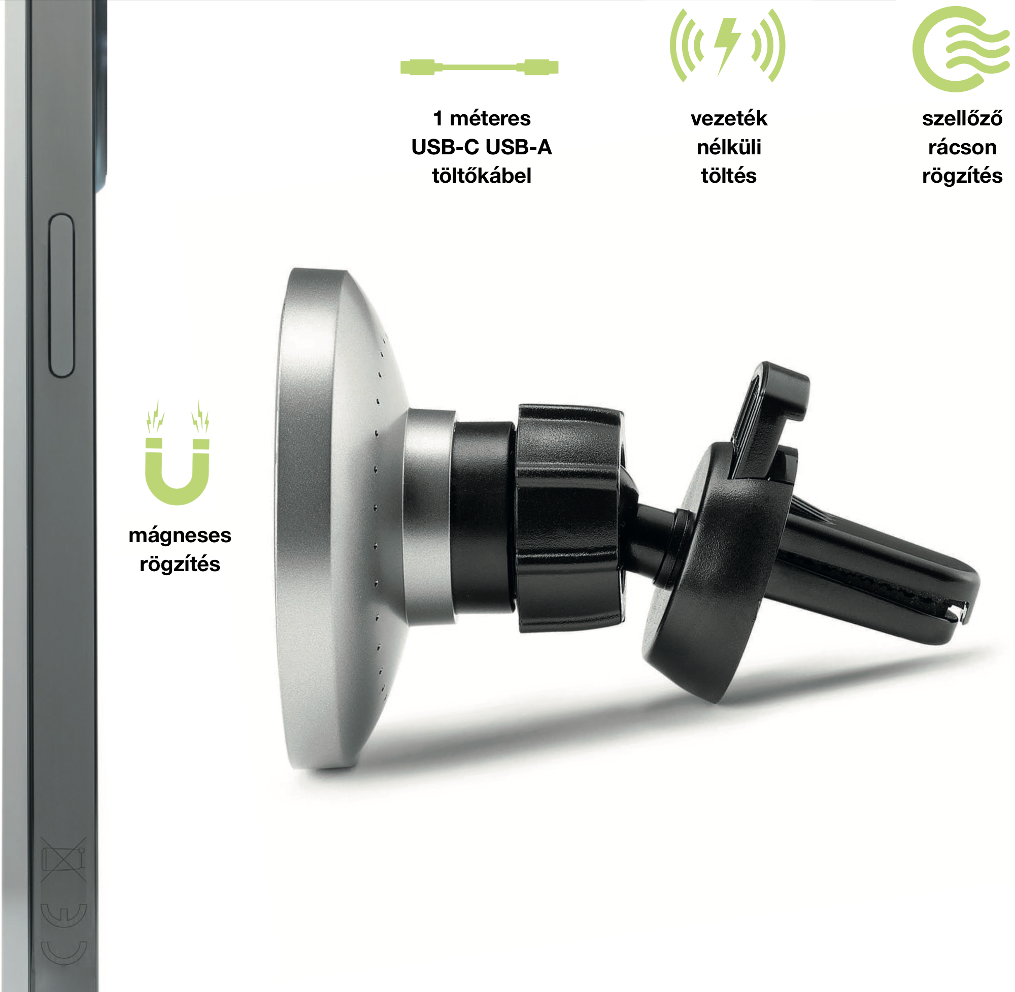 Az AIINO MOVE MagSafe autós tartó és töltő önmagában képes arra, hogy megtartsa a készüléket. Ehhez semmilyen kábelt nem kell csatlakoztatnunk, és nincsen szükségünk szivargyújtó töltőre sem. Ha csupán megtartani kell a készüléket, arra alap helyzetben alkalmas a termék.