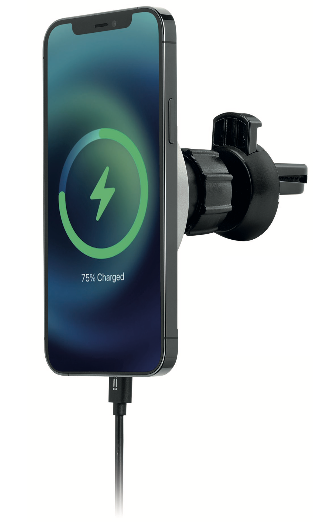 (Normál, nem MagSafe képességű tokokon keresztül az eszköz nem tartja meg a készüléket, és a töltési teljesítmény is drámaian lecsökken. A MagSafe technológia a Qi szabvány módosított változata, így a régebbi, már Qi töltést támogató eszközöket is képes elméletben tölteni maximum 7,5 Watt teljesítménnyel. Ezeket azonban természetesen nem tartja meg, így a töltés csak elméleti, speciális elhelyezést igényelne az autóban, hiszen a tartó csak mágneses képességgel rendelkezik, nincsenek akasztói a régebbi telefonok megtartására.)